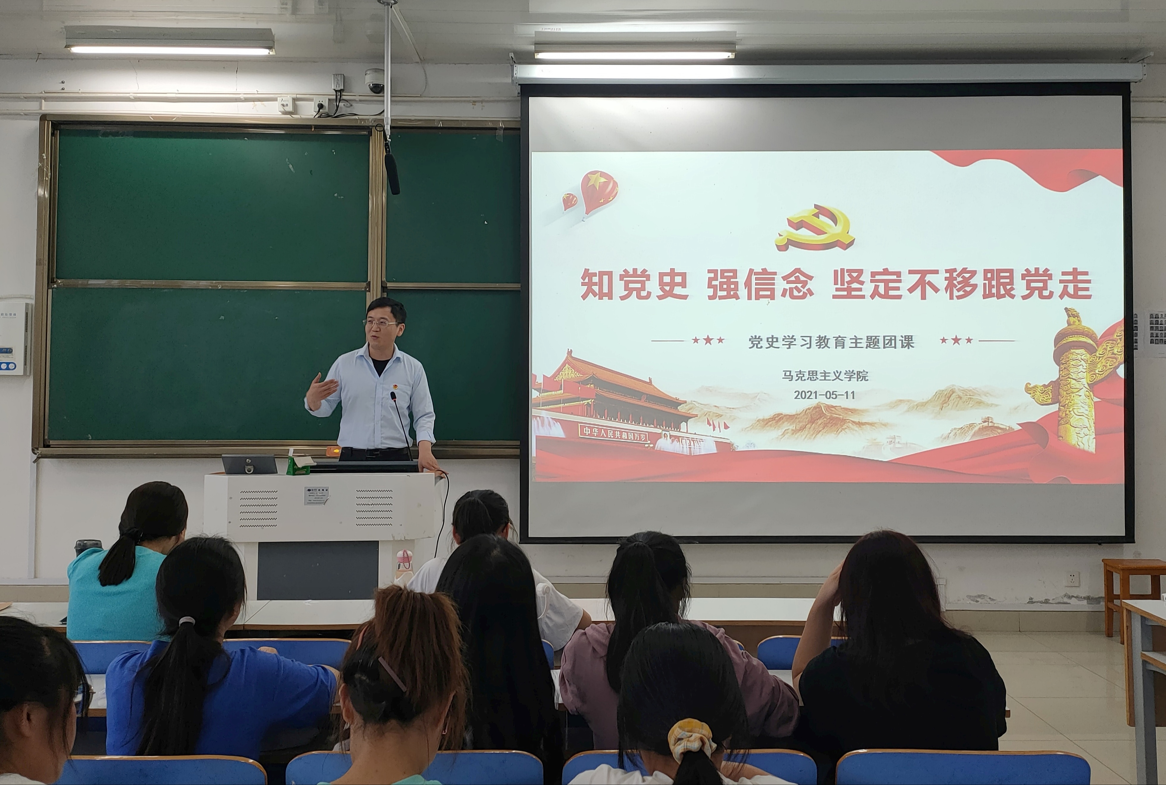 5月11日下午,pp电子官方网站在社科楼516教室顺利开展“知党史,强信念,坚定不移跟党走”党史学习教育主题团课。pp电子官方网站2020级全体团员共同聆听本次团课,团课由pp电子官网团委书记曹栋讲授。