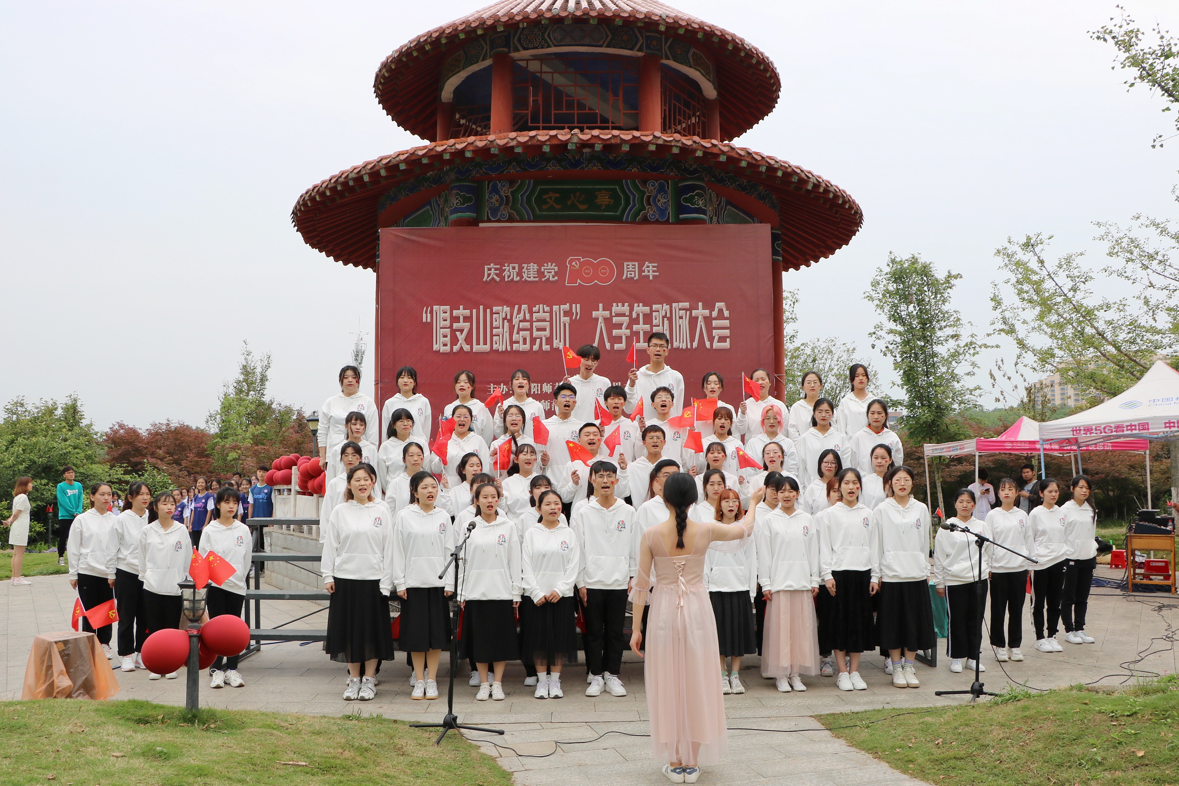 为弘扬以热爱共产党、热爱祖国为核心的民族精神,激励广大青年不惧风雨、勇挑重担。5月23日下午,pp电子官方网站、法学与社会学院联合举办的“唱支山歌给党听”大学生歌咏大会在文心亭隆重举办。党委学工部部长岳宗德 、校团委书记王建旭、pp电子官方网站、法学与社会学学院主要负责同志与近千名师生参加了此次活动。活动由赛孜古尔江、申旭阳主持。