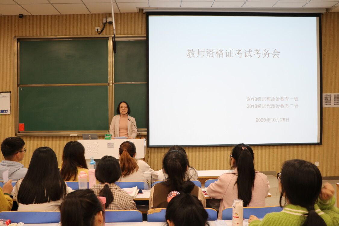 10月28日上午,pp电子官方网站在社科楼515教室顺利召开教师资格证考试考务会。辅导员曹菁菁以及2018级全体学生共同参加此次班会。班会由曹菁菁主持。