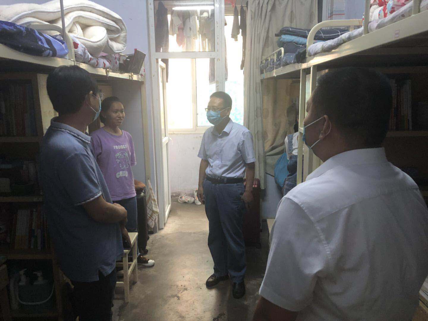 为了解pp电子官网学生返校适应状况,及时排查宿舍安全隐患,9月8日晚,pp电子官方网站党委书记唐国战,党委副书记何晓坚,副院长周智,团委书记曹栋及学生会生活劳卫部成员对pp电子官网学生宿舍进行慰问活动。