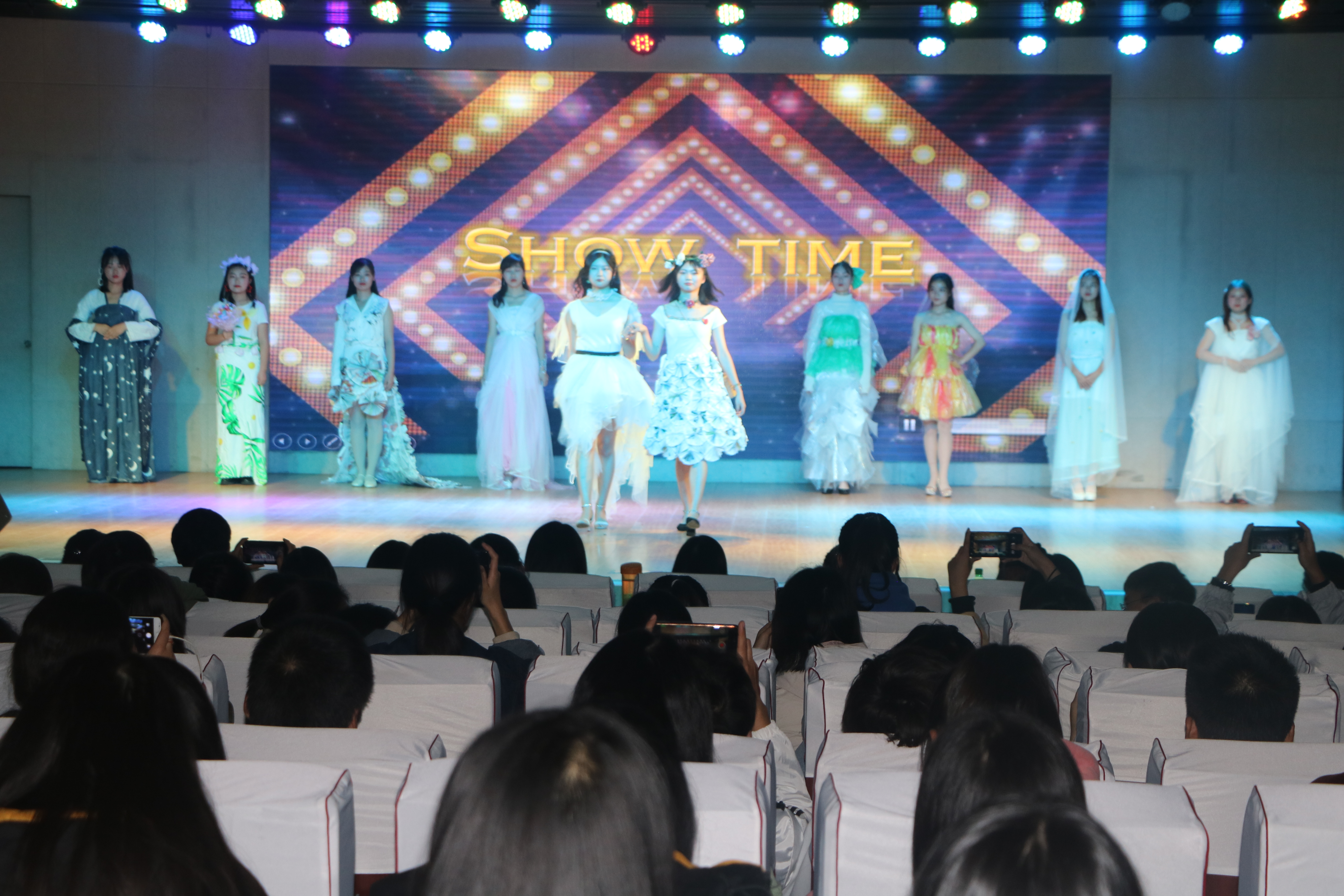 经过初赛、复赛层层选拔,十组选手入围决赛。决赛分为轻纱寄彩梦、报布出新裁、塑塑新时代、流光衬异彩四个篇章。青春动感、活力四射的开场舞拉开比赛序幕。随后,各参赛小组依次登台展示她们独出心裁的服装,精妙的解说词让观众们深入了解作品的设计理念、创作过程和使用材料。优雅端庄、自信大方的走秀表演展现了设计者们独特新颖的服装设计,为同学们带来一场环保与时尚碰撞的视觉盛宴。比赛过程中穿插歌曲、相声、有奖竞答等环节,内容丰富,精彩纷呈。其中,pp电子官方网站2018级参赛小组用废弃条幅、纱帐等材料制成的以纤云梦为主题的服装作品“礼•关雎”,立足于雾霾治理,着眼于碧水蓝天,不仅体现出环保理念又融合了时尚元素,获得了评委们的青睐,最终摘得桂冠。