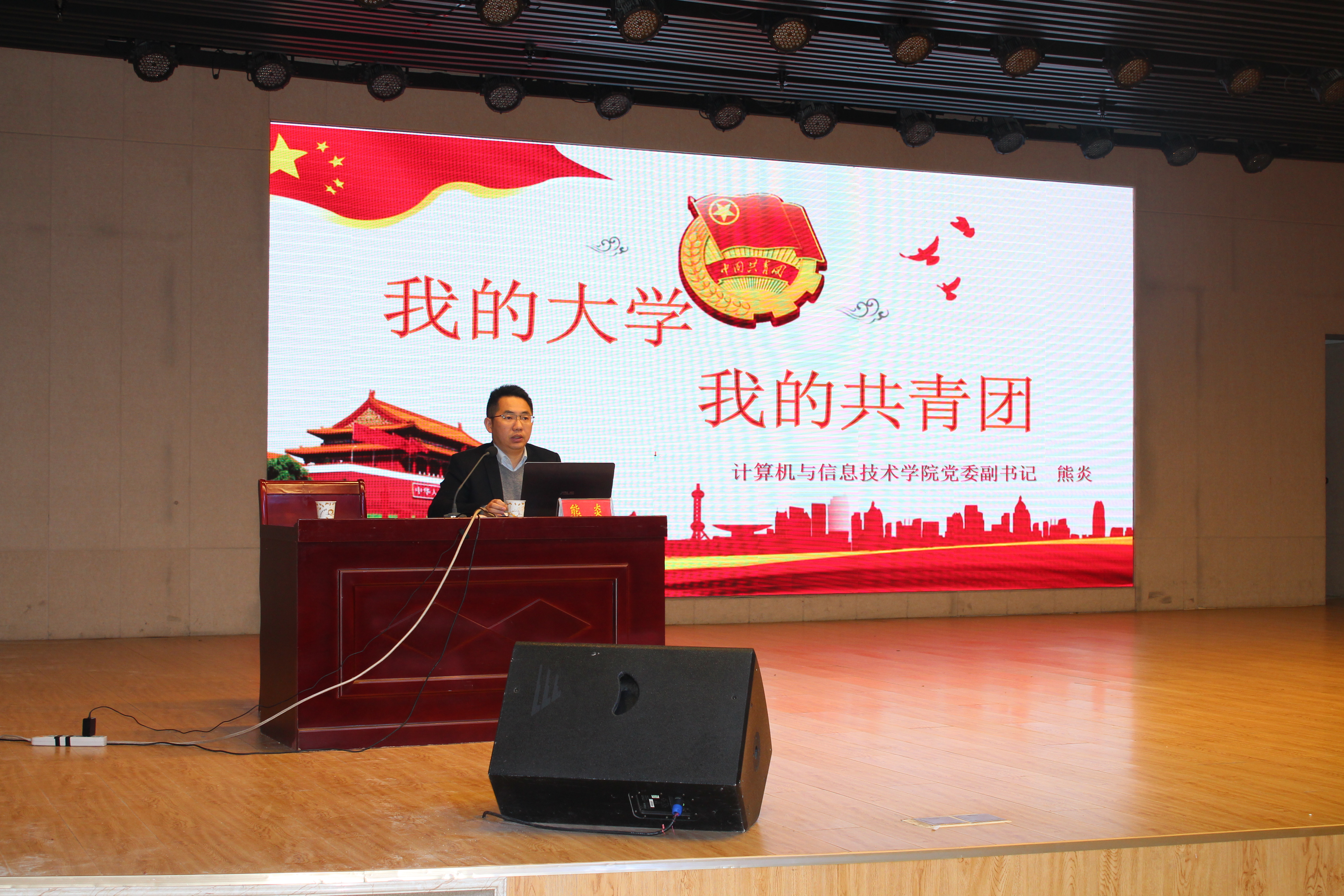 青年兴则国家兴,青年强则国家强。11月22日晚,计算机与信息技术学院党委副书记熊炎在理科楼报告厅为pp电子官方网站和化学化工学院新生团员讲授题为“我的大学,我的共青团”的主题团课。pp电子官方网站团委书记曹栋、化学与化工学院团委老师赵方方以及两院新生团员共同聆听本次团课。