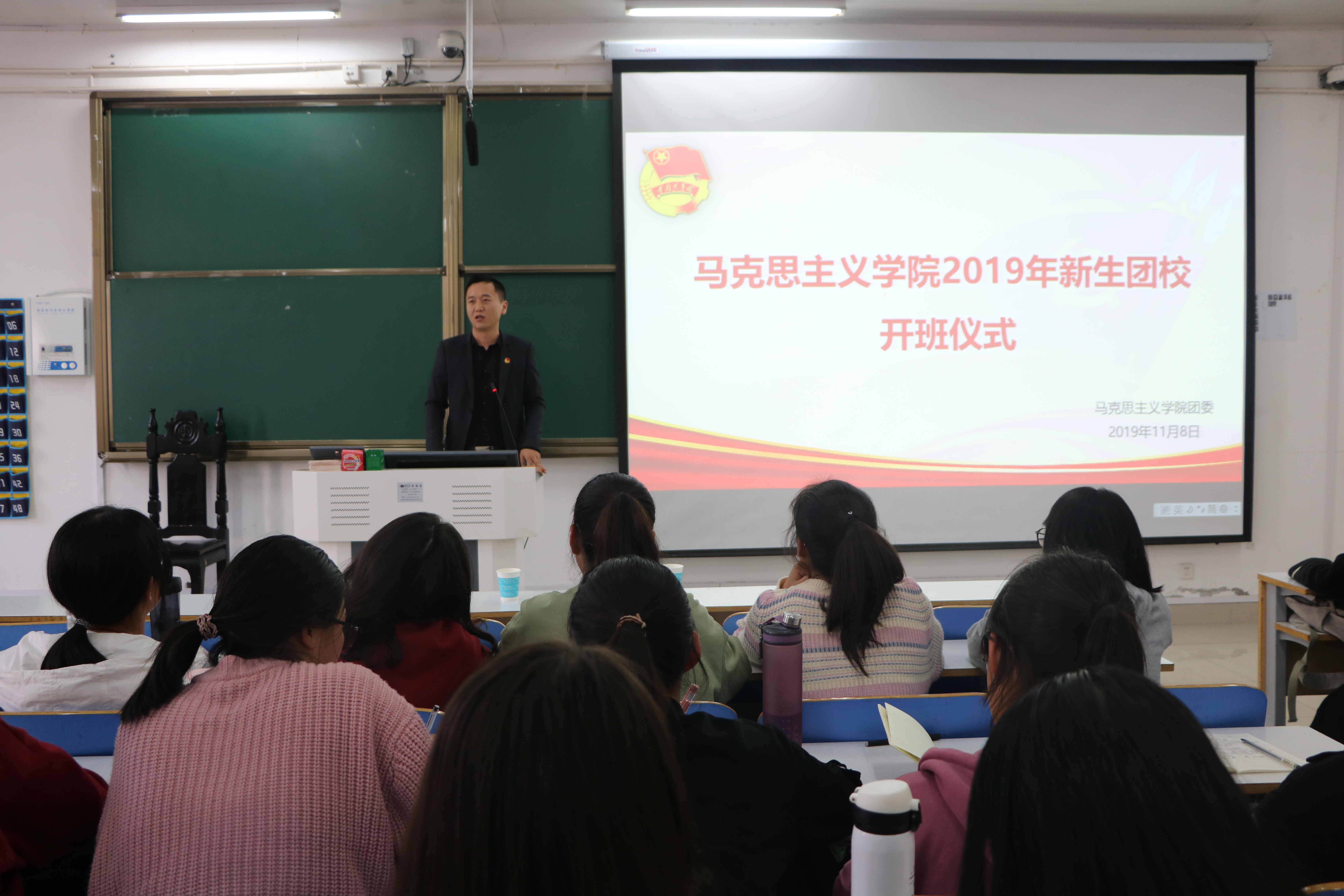 11月8日下午,pp电子官方网站在社科楼516教室举办2019级新生团校开班仪式。团委书记曹栋,团委老师陶青青,18级部分团员及19级全体新生共同参会。会议由2018级团员李静主持。