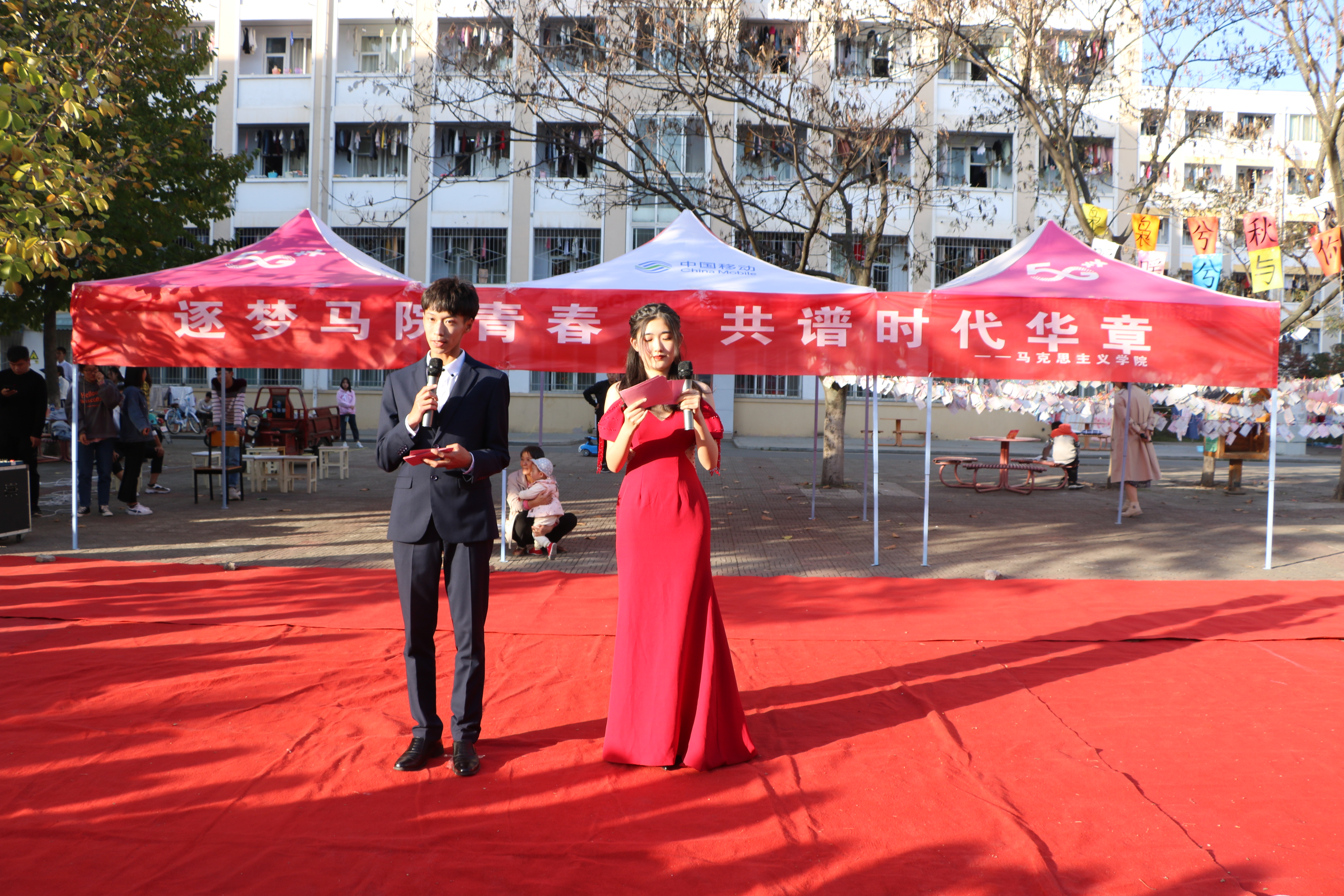11月10日下午,由pp电子官方网站主办的“逐梦马院青春,共谱时代华章”文艺汇演在八餐小广场隆重举行。pp电子官网团委老师陶青青、2019级全体同学共同观看本次汇演。汇演由pp电子官网学生王誉博和吕昂主持。