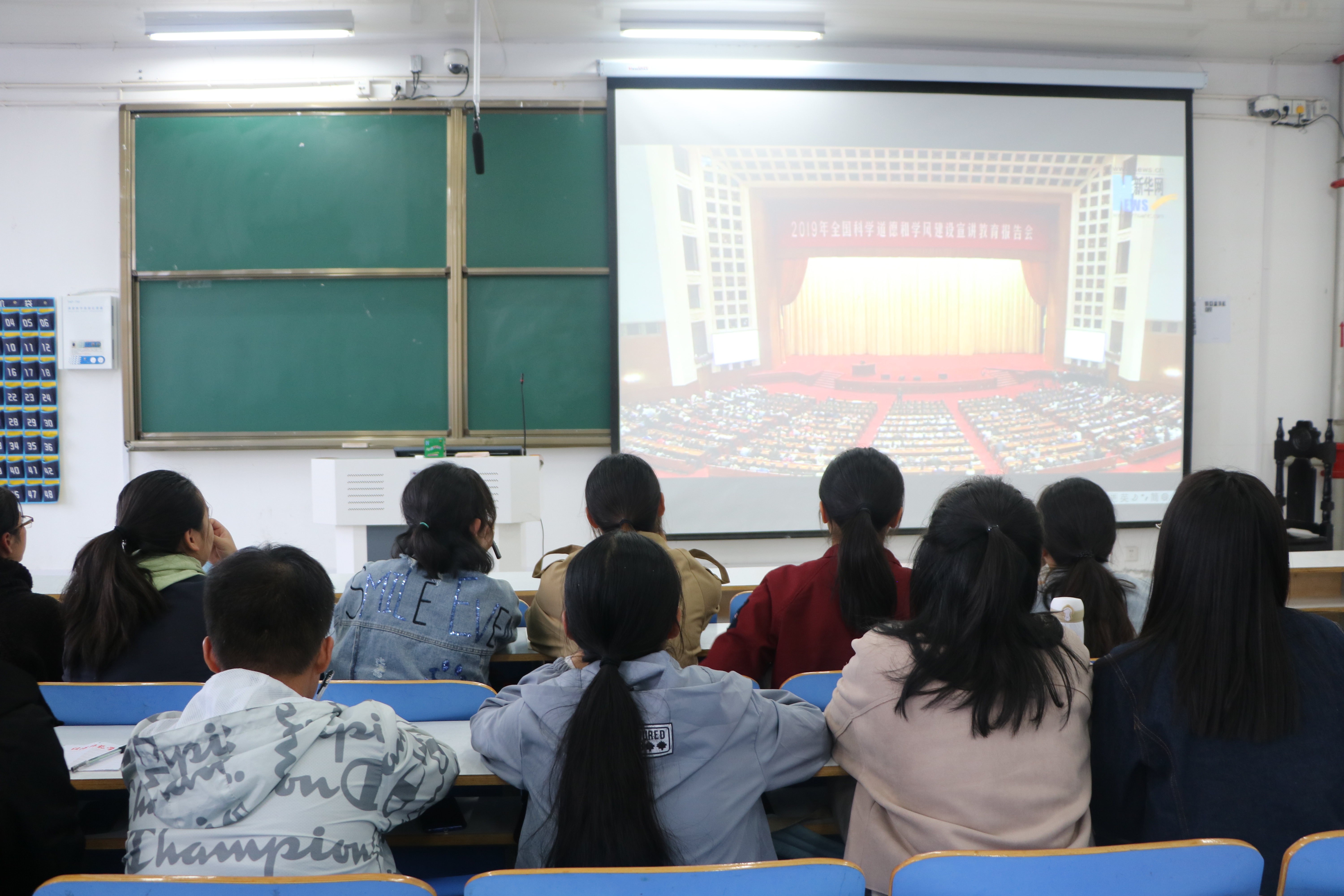 为学习贯彻习近平新时代中国特色社会主义思想和习近平总书记关于科学道德和学风建设的重要指示精神,推进pp电子官网科学道德和学风建设工作,11月13日下午,pp电子官方网站组织学生在社科楼516教室观看2019年全国科学道德和学风建设宣讲教育报告会直播。