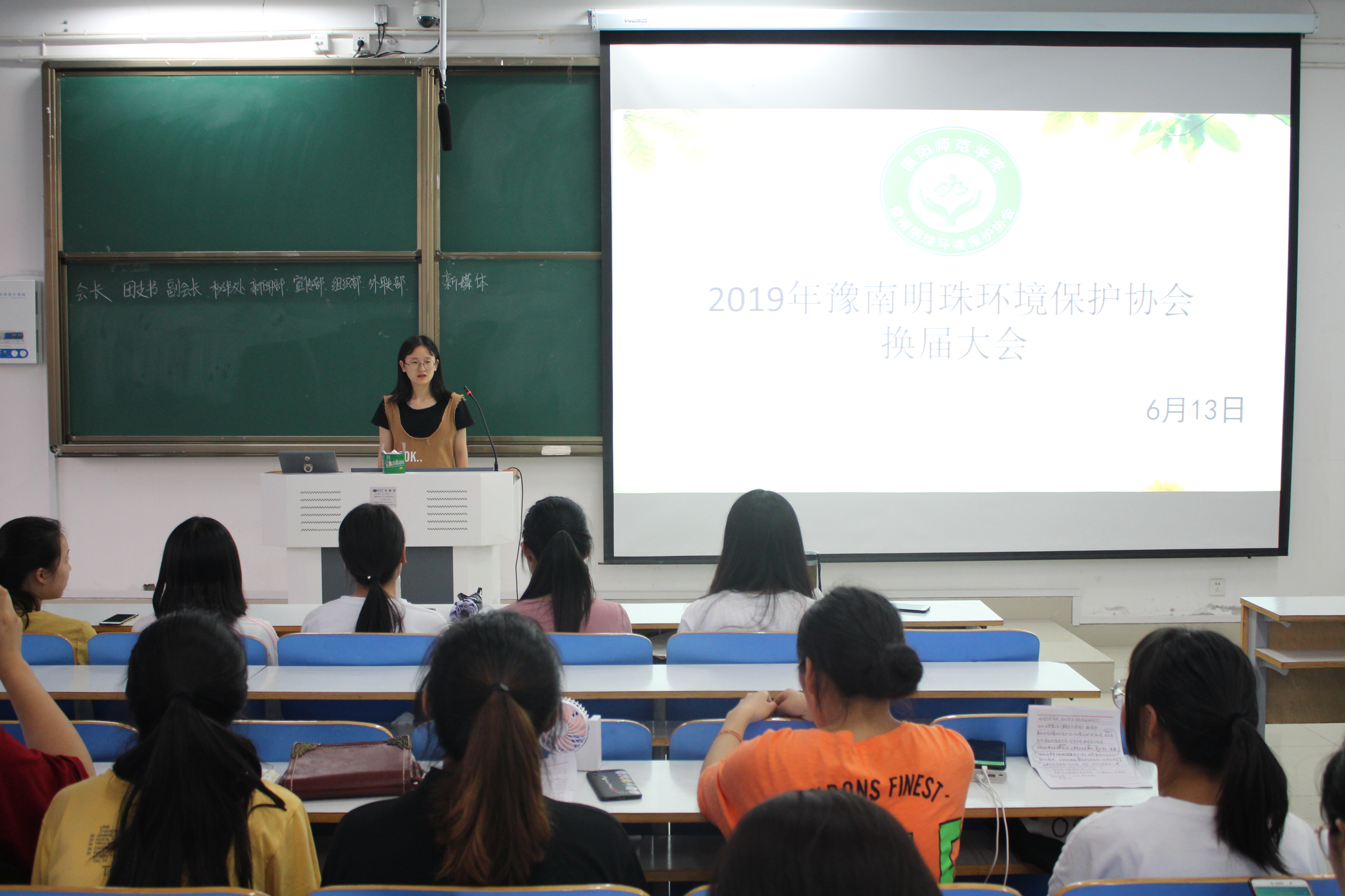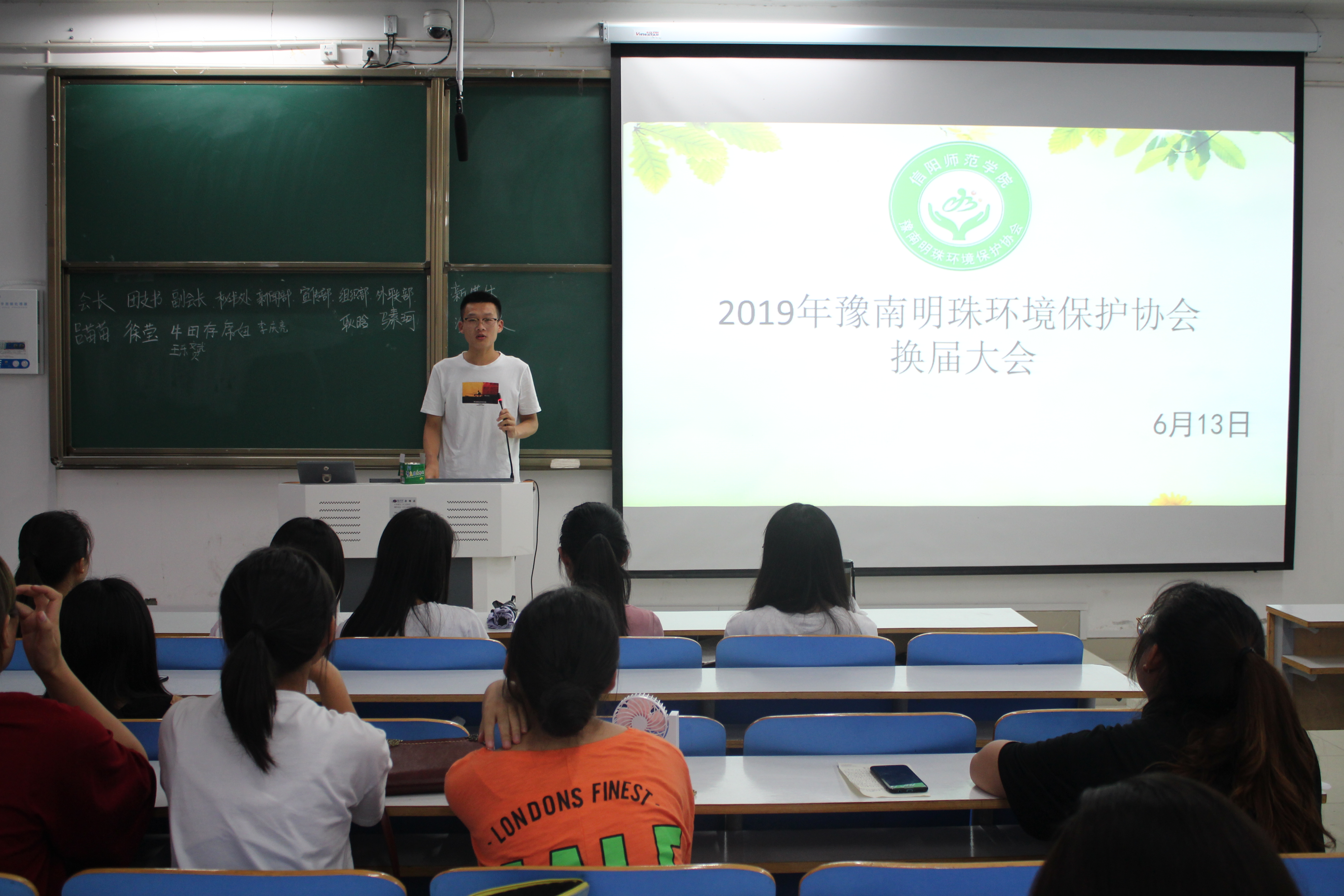6月13日晚,豫南明珠环境保护协会在社科楼516教室顺利举行2018-2019学年社团换届竞选大会。pp电子官方网站分团委学生会副主席高蓉、社长丁素艳、团支书郑梦丹及18级全体成员共同参加了此次全会。会议由丁素艳主持。