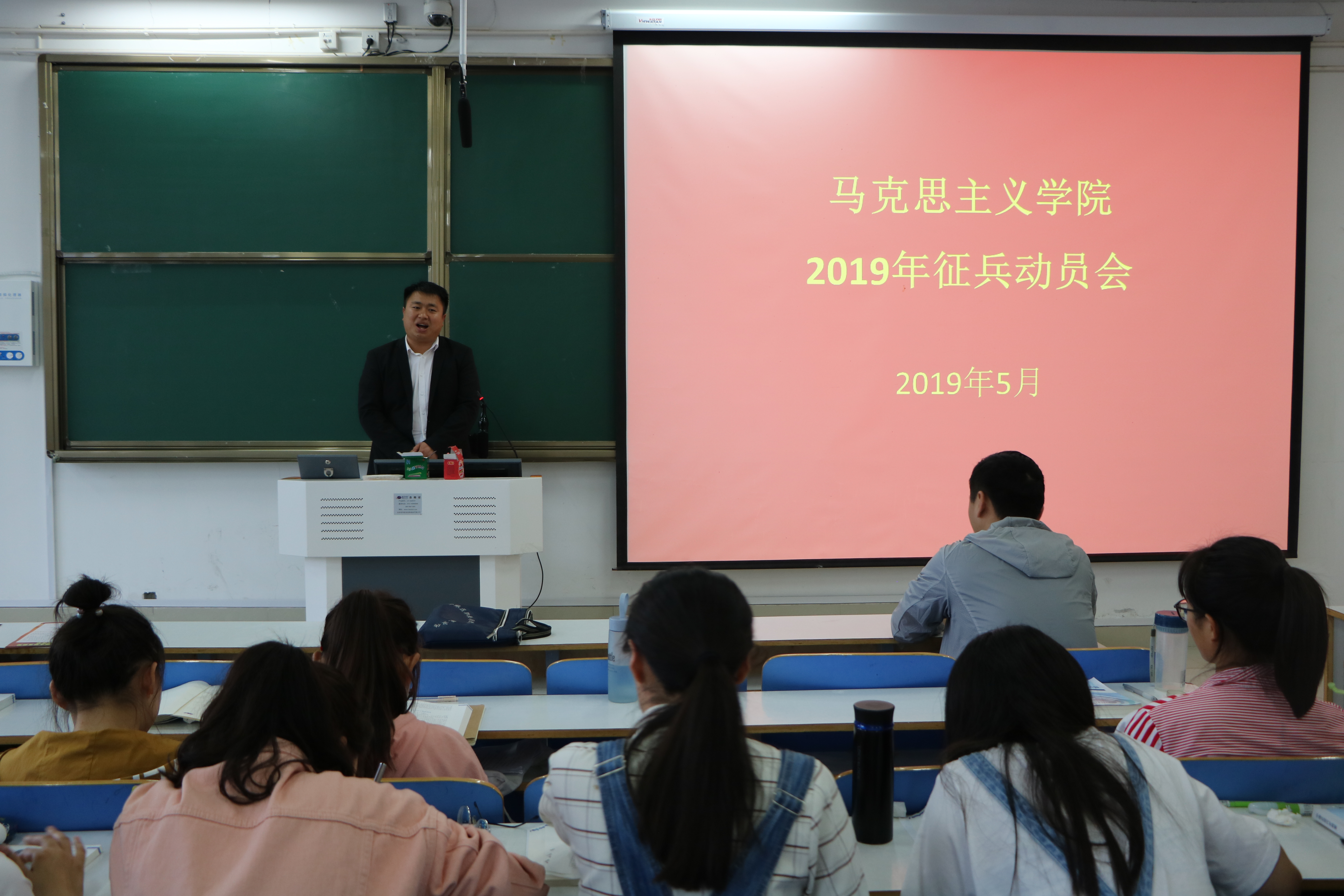 5月15日下午,pp电子官方网站在社科楼516、社科楼515教室相继召开pp电子官方网站2019年征兵动员会。pp电子官网武装干事曹菁菁、团委书记曹栋、研究生退伍士兵段志勇、2015级部分学生以及2016级、2017级、2018级全体学生参加此次动员会。动员会由曹菁菁主持。