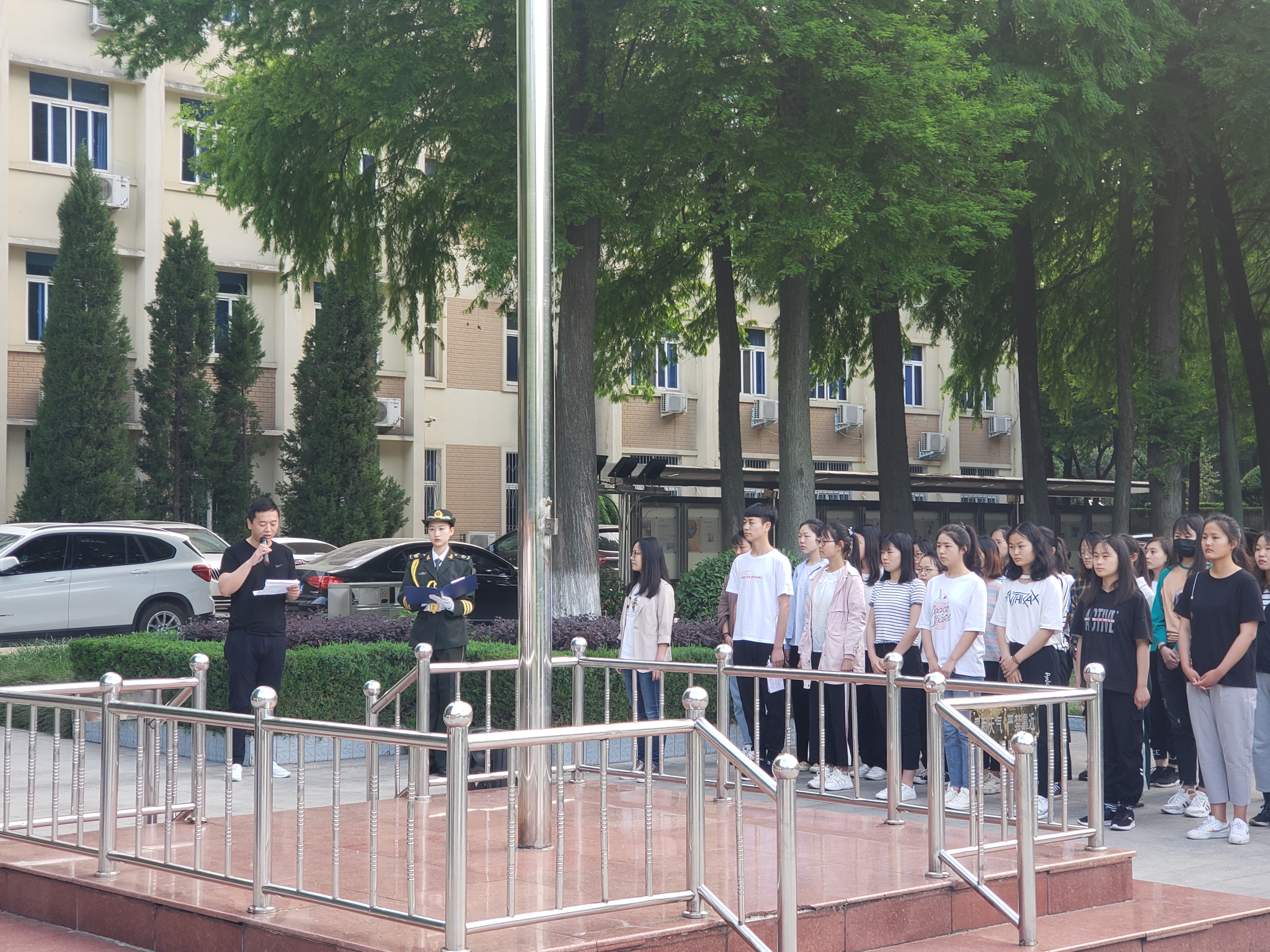 5月20日清晨,pp电子官方网站于行政楼隆重举行升旗仪式。pp电子官网团委书记曹栋,专职辅导员曹菁菁,我校国旗护卫队和2018级全体学生参加本次升旗仪式。仪式由国旗护卫队莫铭非主持。