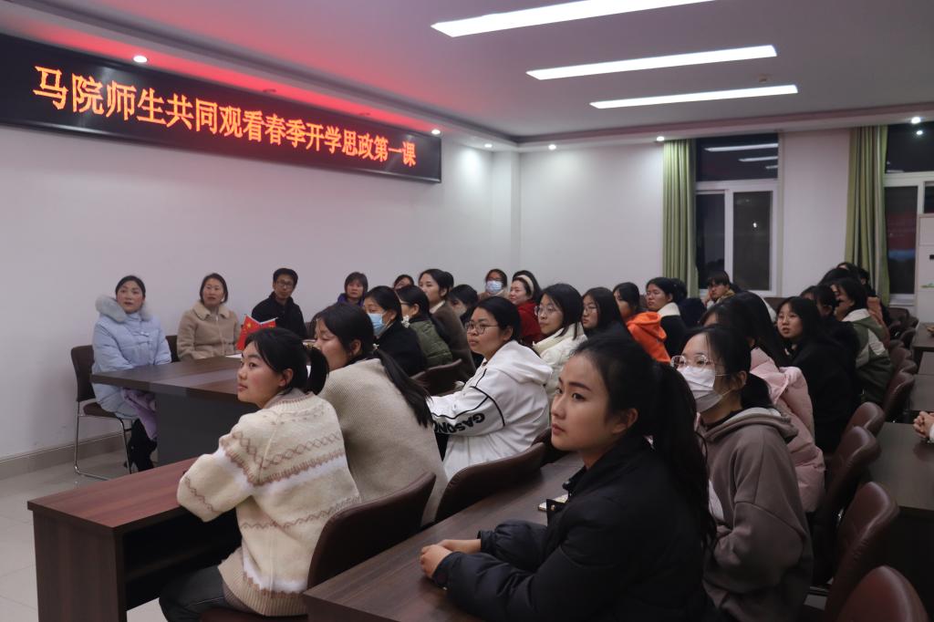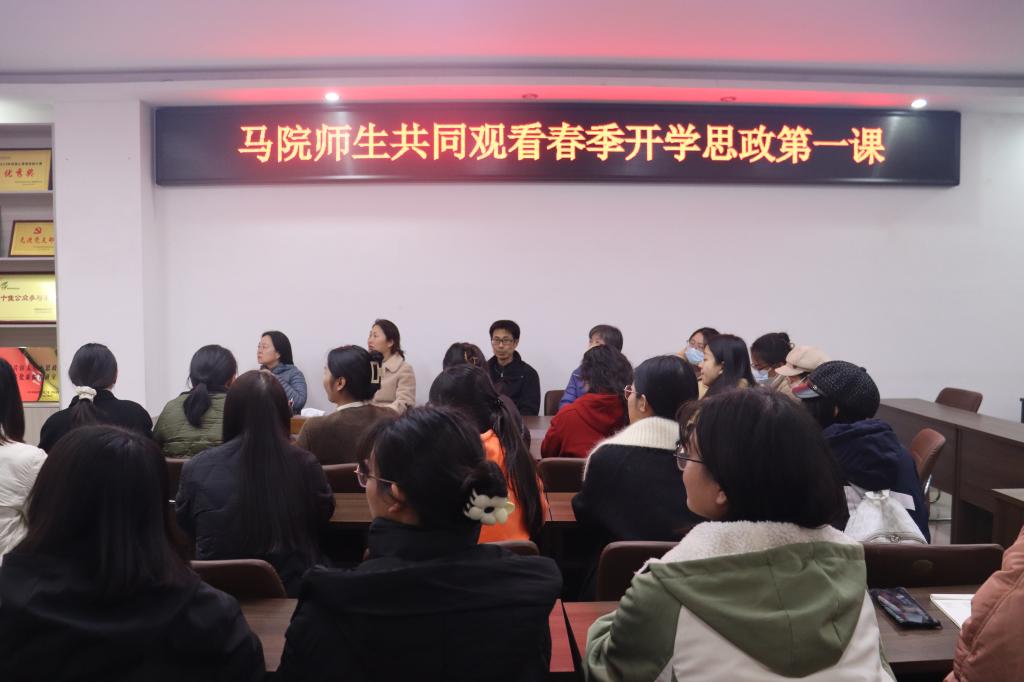 为学习贯彻习近平文化思想和习近平总书记关于思政课建设的重要论述,统筹推进全省大中小学思政课一体化建设和文化育人工作,引导广大师生深化对“两个确立”决定性意义的认识,省委教育工委、省教育厅于3月9日晚上开展2024年河南省春季开学思政第一课暨大中小学思政课集体备课活动。pp电子官方网站组织学院师生共同观看了直播。