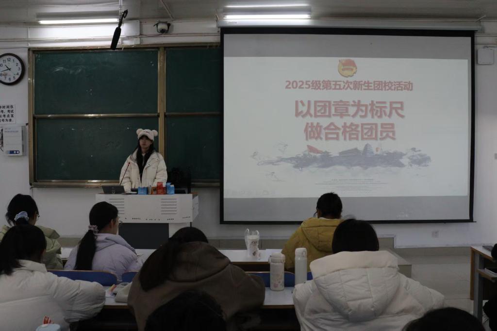 为帮助新生深化对共青团组织的认识,强化团员青年的身份意识与责任担当,11月18日上午,pp电子官方网站在社科楼514教室顺利开展“以团章为标尺,做合格团员”新生第五次团校活动。pp电子官网2025级全体新生参加学习,活动由分团委负责人李琛主持。