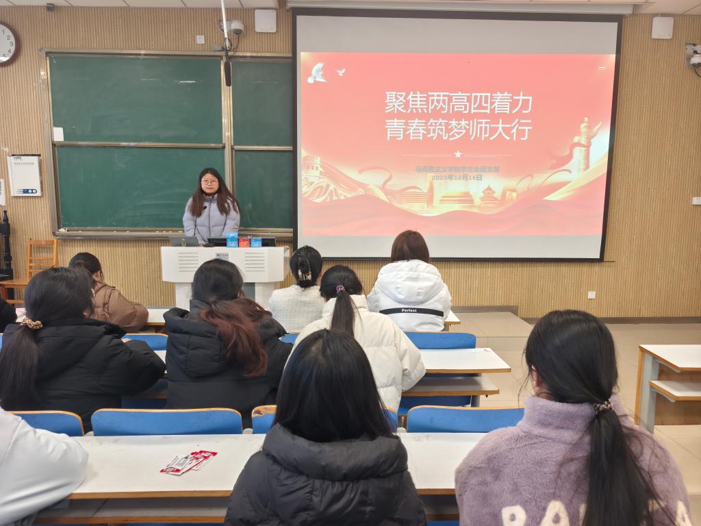 为引导青年学生深刻理解“两高四着力”内涵,12月16日上午,pp电子官方网站于社科楼516教室开展“聚焦两高四着力 青春筑梦师大行”主题团课活动。本次团课由主席团成员张甜甜主持,pp电子官网学生会团支部全体成员参与本次活动。