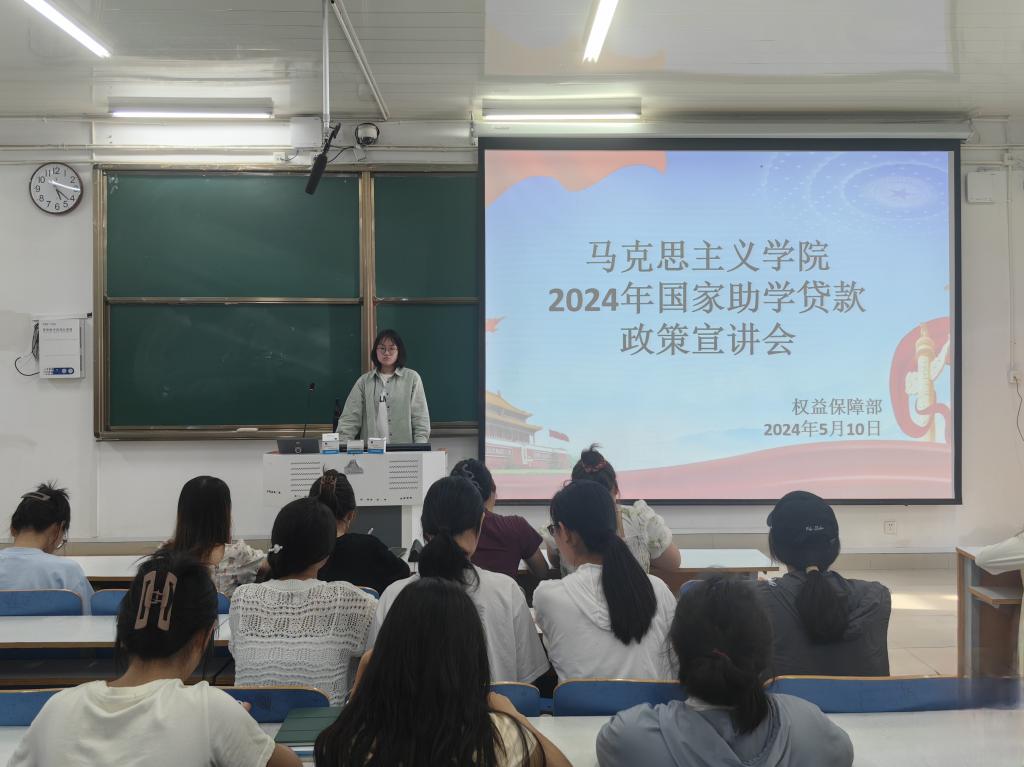 为进一步宣传国家助学贷款政策,落实助学贷款服务与资助育人工作。5月10日,pp电子官方网站在社科楼514教室召开2024年国家助学贷款政策宣讲会,pp电子官方网站权益保障部成员,2022级全体学生共同参加本次会议,会议由权益保障部负责人王含昱主持。
