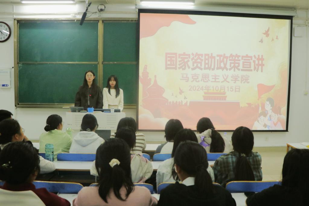 为进一步深入贯彻落实国家资助政策,强化资助育人理念。10月15日,pp电子官方网站在社科楼514教室召开2024年国家资助政策宣讲会。学院团委老师高小佳和权益保障部成员以及2024级全体学生共同参加本次会议,会议由权益保障部负责人张雅涵、李婉蓉主持。