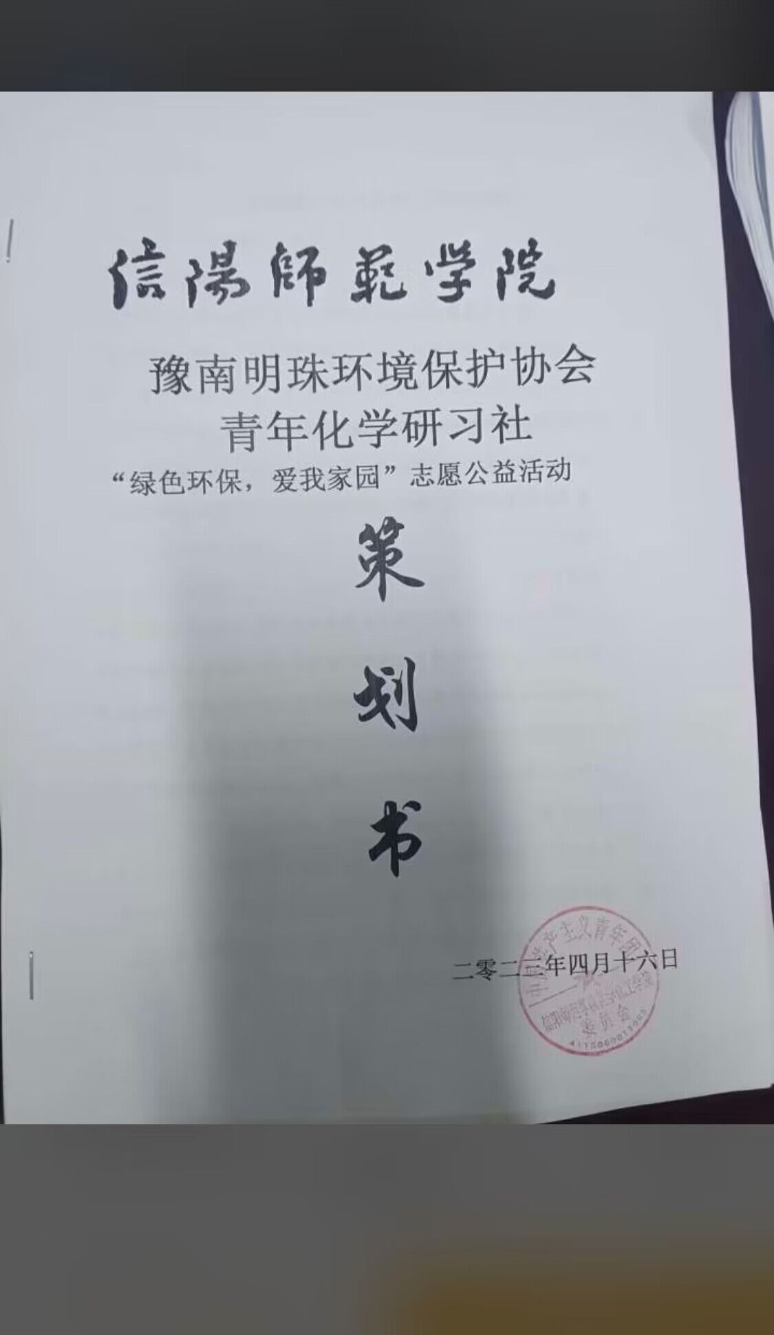 绿水青山就是金山银山。绿色是不变的话题,和谐是永恒的追求,为了深化学生对绿色发展的新发展理念的认识和对环境的爱护意识,以及增强大家绿化环境保护环境的责任感,践行习近平生态文明思想,4月23日——4月29日,豫南明珠环境保护协会与青年化学研习社联合举办“绿色环保爱我家园”志愿公益活动。