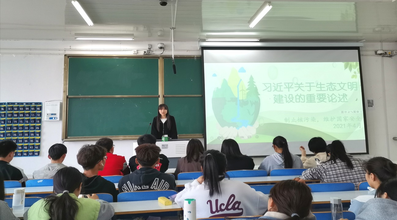 团课伊始,徐铬以日本核废水排放的热点问题为话题,使社员了解到日本的核废水正在受到高度重视,从而形成其对核污染的初步认识。接着,徐铬结合幻灯片围绕核废水的由来、随意排放的危害性、正确处理核废水的方法以及针对日本的无耻行为我国采取的措施四个方面展开论述,使社员明晰日本核污染的发展脉络,增进社员对此次日本核废水排放入海事件的恶劣性的了解,增强社员践行环保理念的信念。随后,徐铬通过播放与此事件相关的视频,号召社员要具备高度的环保意识,重视生态文明建设工作,并在日常生活中坚持不懈地践行环保理念。最后,社员依据团课内容踊跃发表自己的看法和感悟,团课圆满结束。