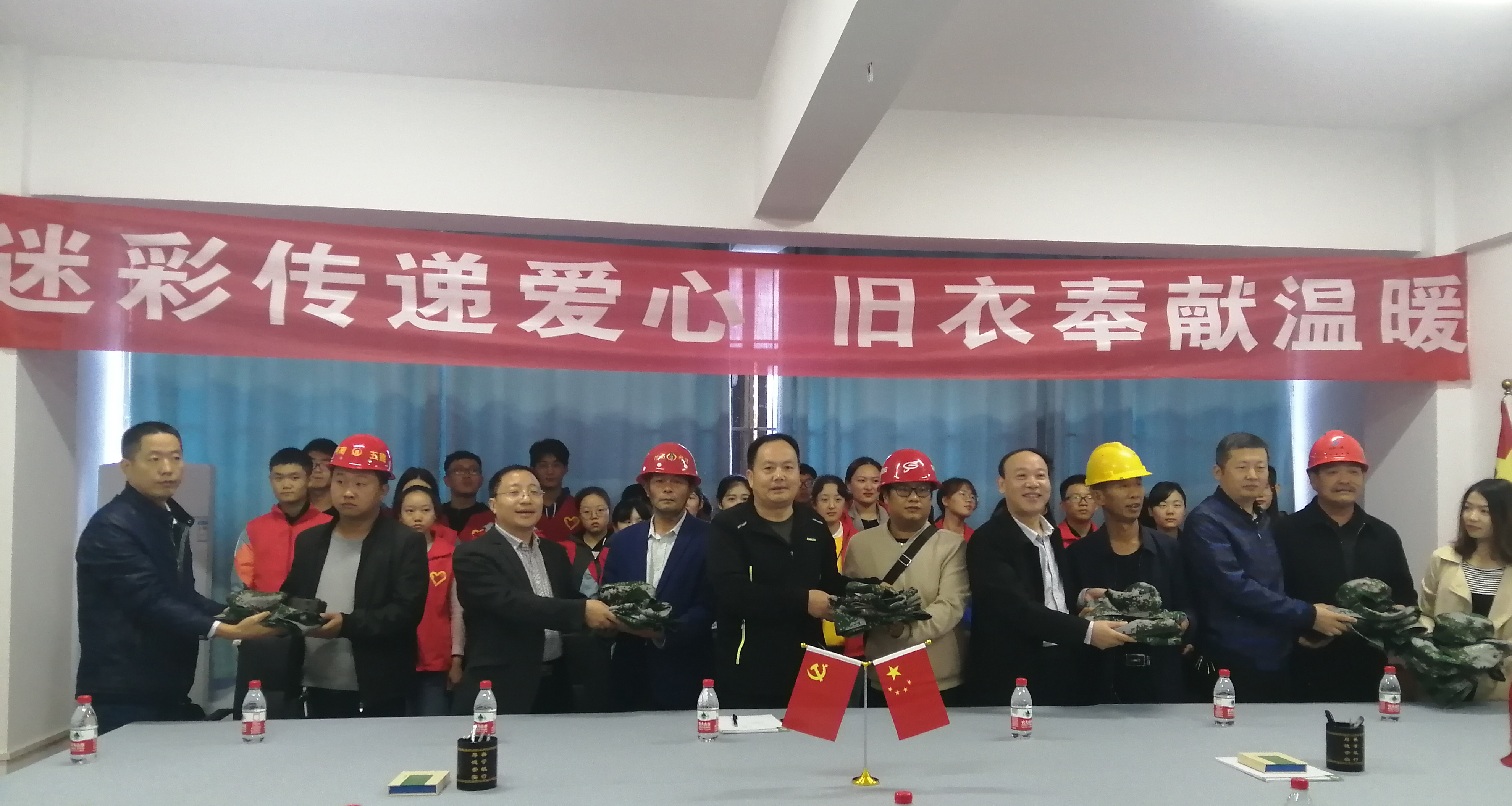 为提升资源利用效率,增强大学生的社会责任感,10月12日上午,豫南明珠环境保护协会联合爱心学校社团在大门楼二楼会议室举办“迷彩传递爱心,旧衣奉献温暖”军训服捐赠仪式,后勤管理处副处长冯铁臣、基建处副处长秦士荣、王松亭、物理电子工程学院党委书记柳士刚、pp电子官网党委副书记徐永新等各位领导老师共同出席本次会议,会议由冯铁臣主持,建筑工人代表和社团部分成员共同参加。