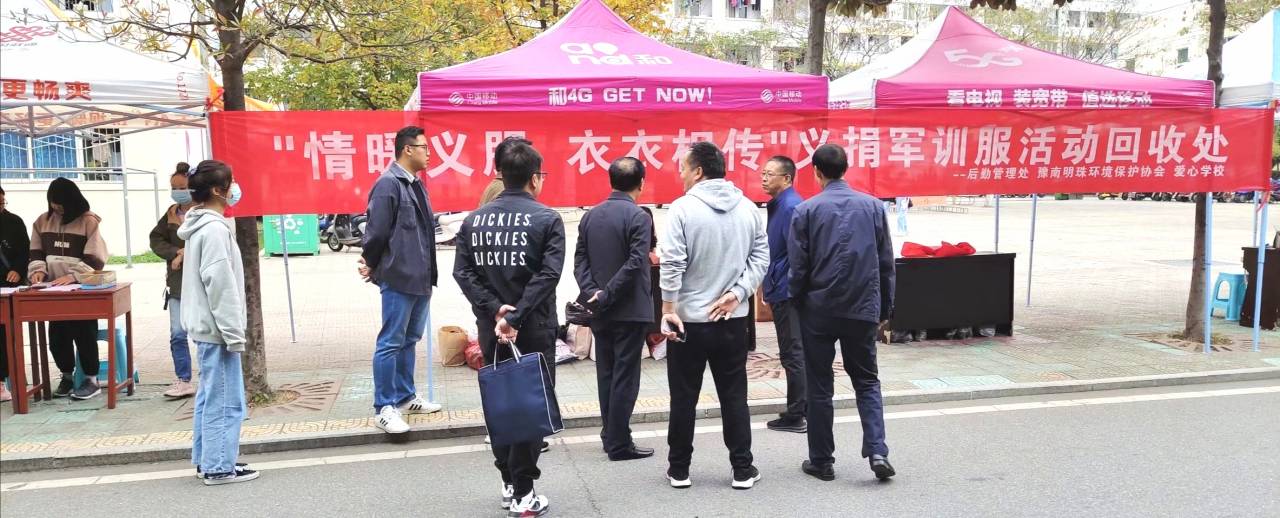 为提高大学生社会责任感与回馈社会意识,促进资源合理利用,10月28日至10月31日,由信阳师范学院后勤管理处主办,豫南明珠环境保护协会和爱心学校承办的“情暖义服,衣衣相传”义捐军训服活动在八餐小广场顺利举行。