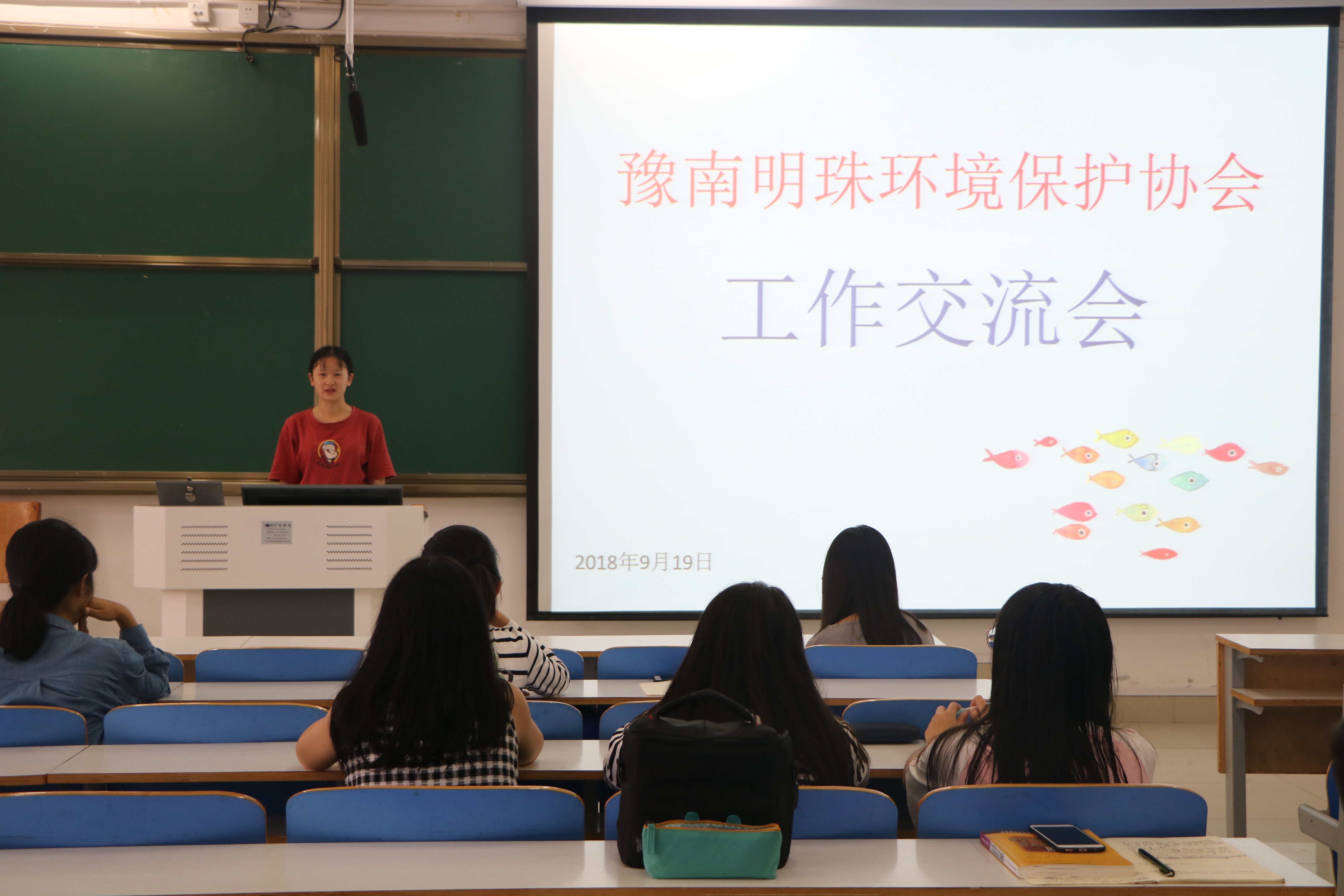 为推动换届后社团日常工作的正常开展,传承和发扬环保精神,9月19号下午,豫南明珠环境保护协会在社科楼516教室举行了干部工作交流会。学生会分管副主席薛文静、原社团社长张明慧,原社团团支书胡凌燕,环保志愿服务队原队长杜德伟以及新一届社团负责人共同参加此次会议。