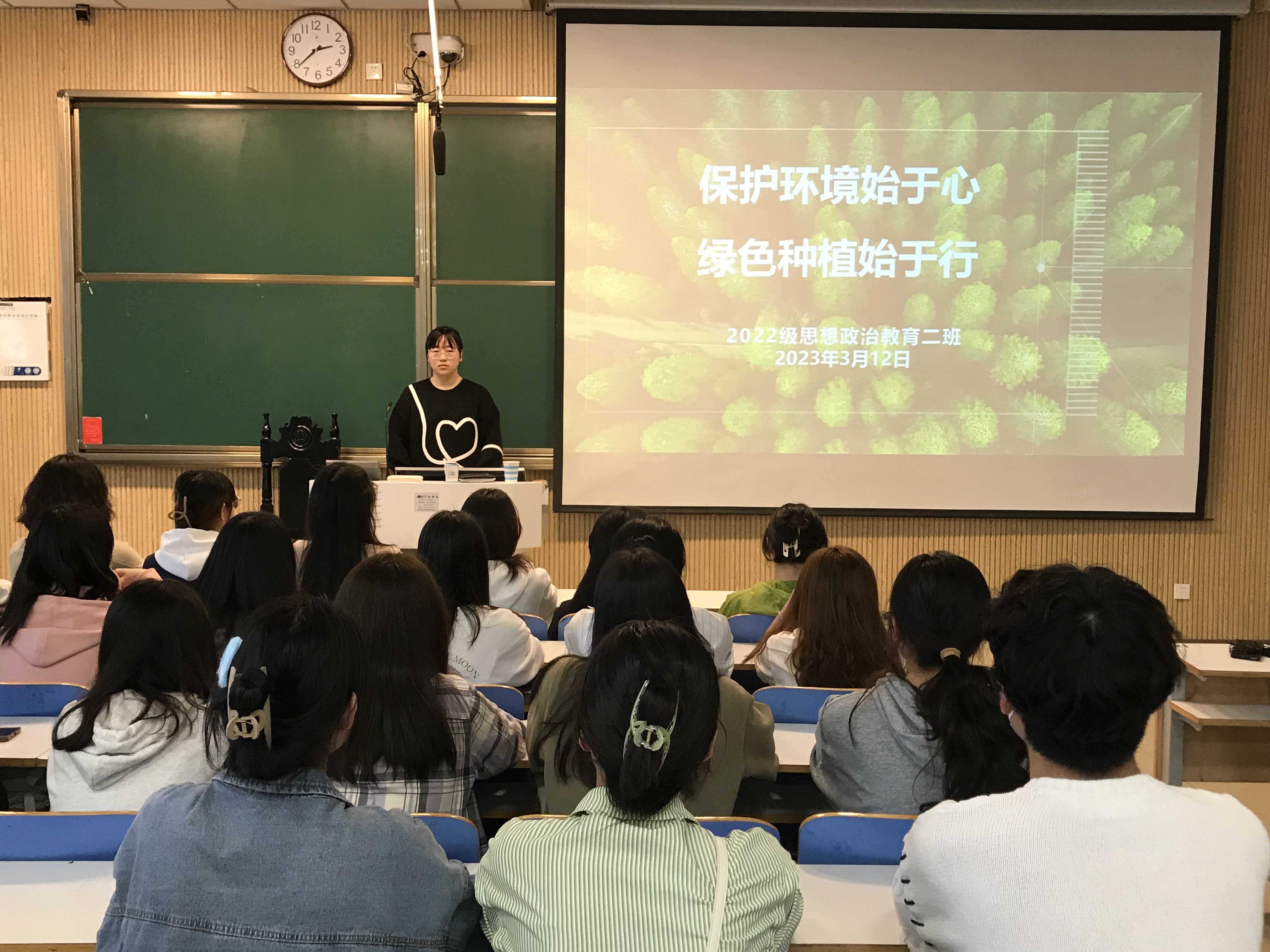 3月12日下午,pp电子官方网站2022级思想政治教育二班在社科楼515教室召开“保护环境始于心 绿色种植始于行”主题班会。2022级思想政治教育二班全体同学共同参加会议。班会由班长李佳音主持。