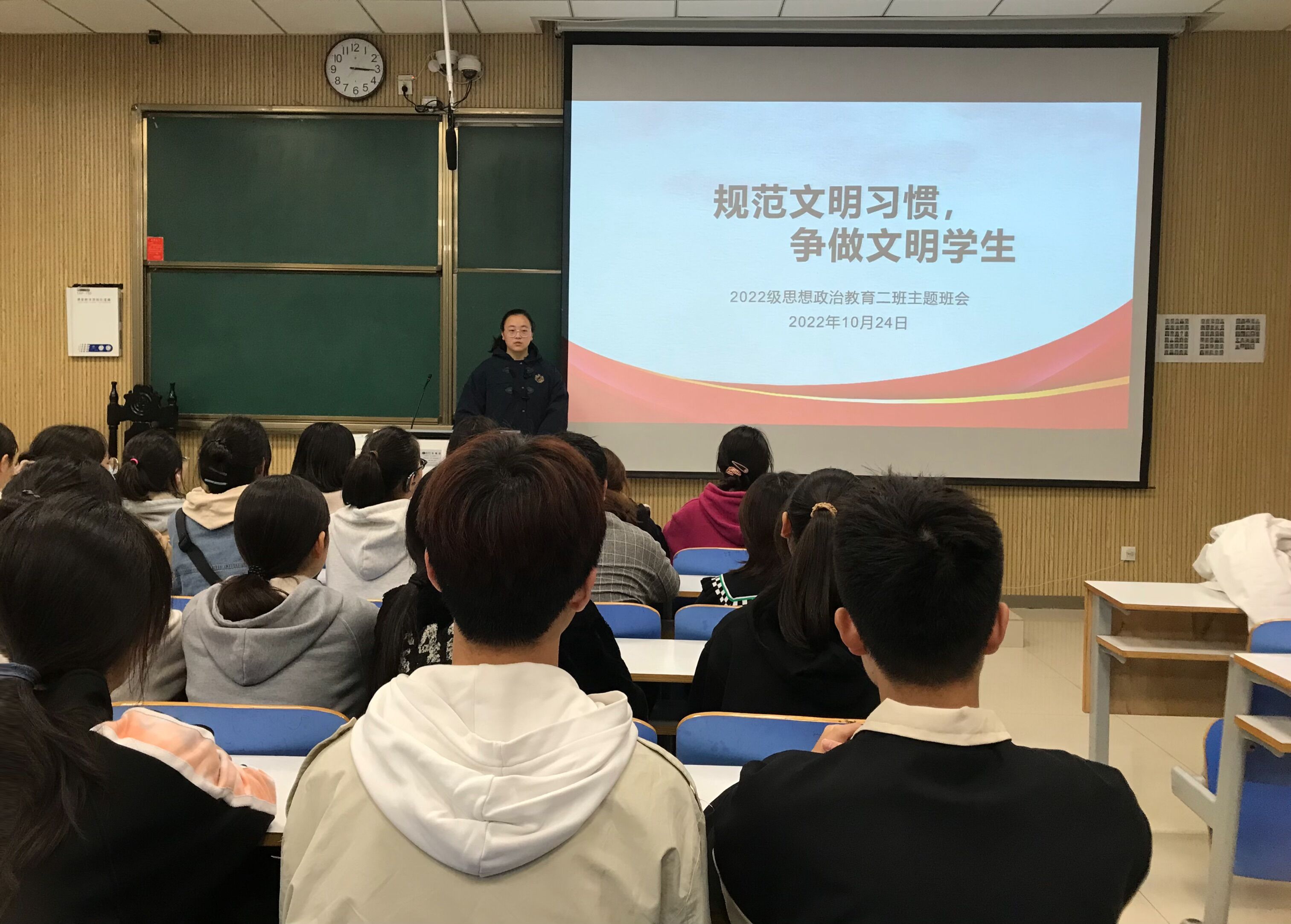 为引导大学生进一步培育和践行社会主义核心价值观、推进文明校园建设,10月24日下午,pp电子官方网站2022级思想政治教育二班在社科楼514教室召开“规范文明习惯,争做文明学生”主题班会。2022级思想政治教育二班全体同学共同参加会议。本次会议由团支书李佳音主持。