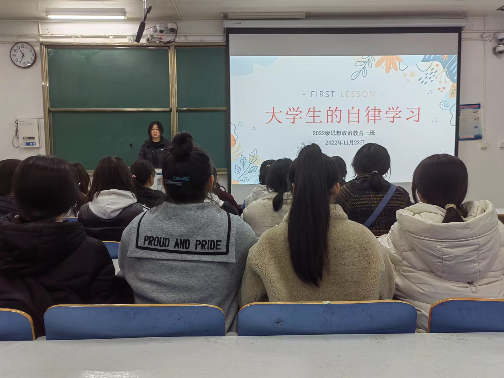 自律学习,不负韶华。为进一步增强大学生学习主动性和积极性,11月23日下午,pp电子官方网站2022级思想政治教育三班在社科楼515教室召开大学生的自律学习主题班会。pp电子官网2022级思想政治教育三班全体成员共同参与此次班会,班会由学习委员朱欣燕主持。