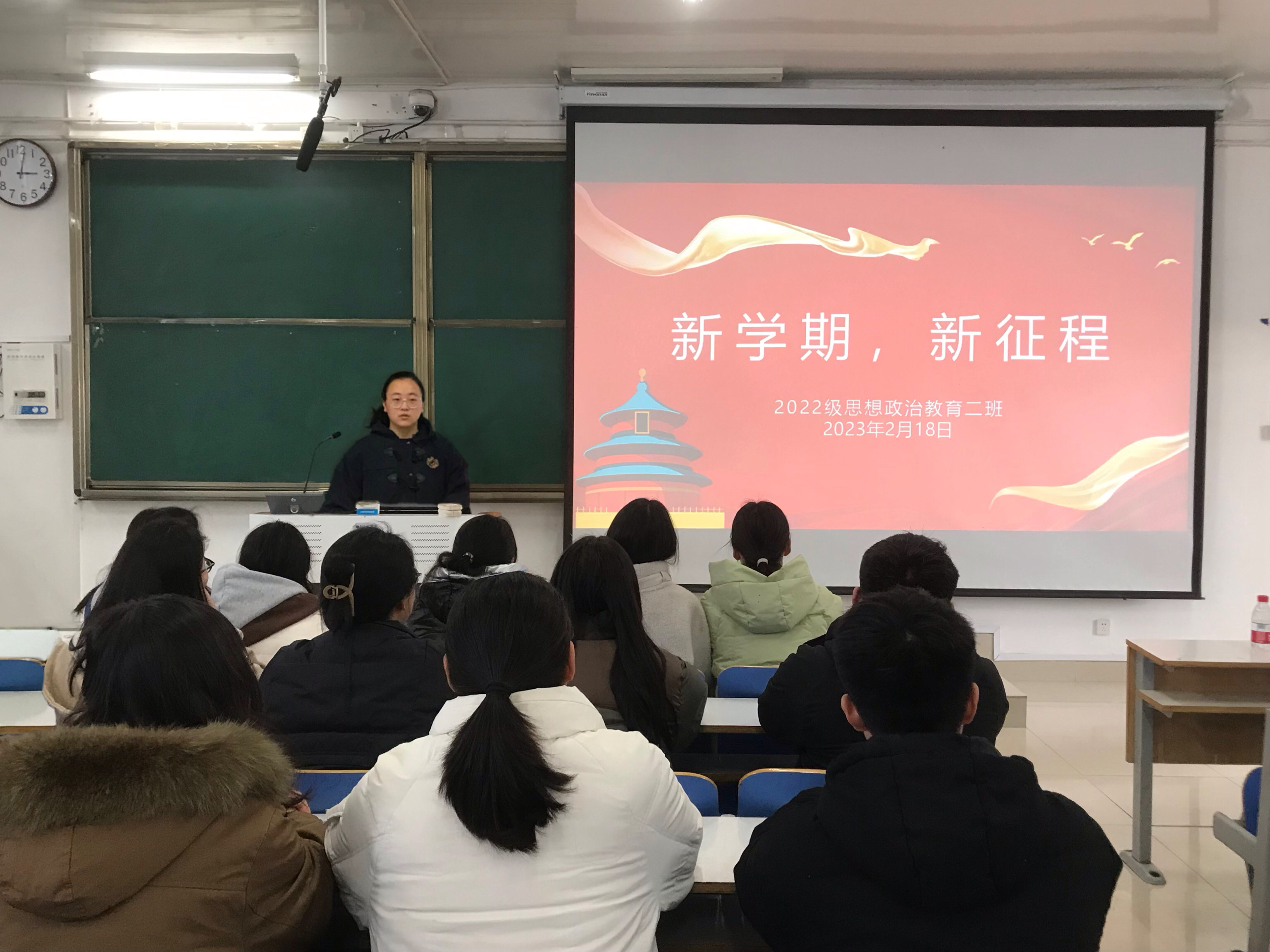 筑梦新学期,扬帆再启航。2月18日下午,pp电子官方网站2022级思想政治教育二班于社科楼514召开“新学期 新征程”主题班会。2022级思想政治教育二班全体同学共同参加会议。会议由班长李佳音主持。