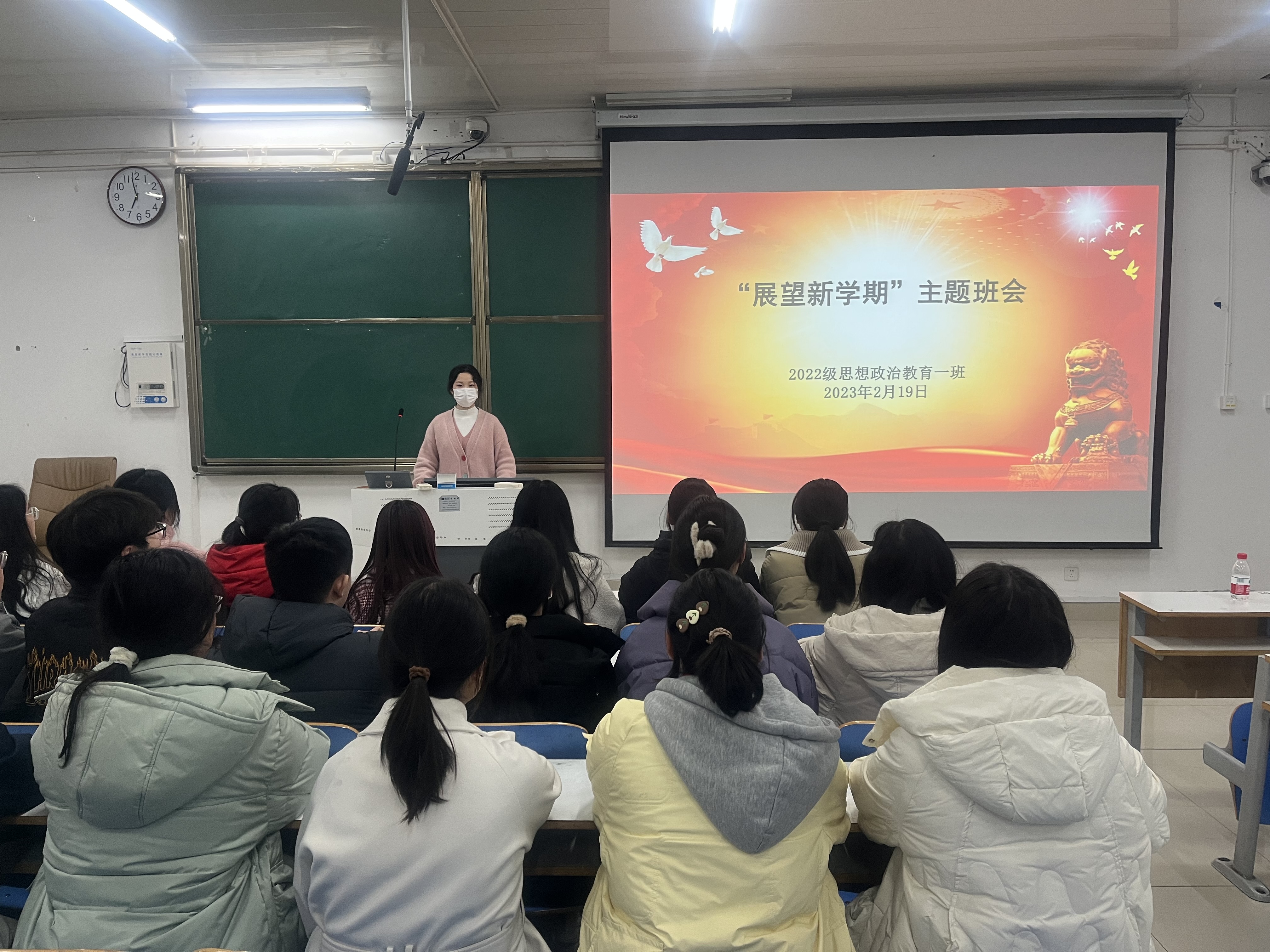 为更好地迎接新学期的到来,顺利开展各项工作,2月19日下午,pp电子官方网站2022级思想政治教育一班在社科楼514教室召开“展望新学期”主题班会。2022级思想政治教育一班全体同学参与班会,班会由团支书李佳茹主持。