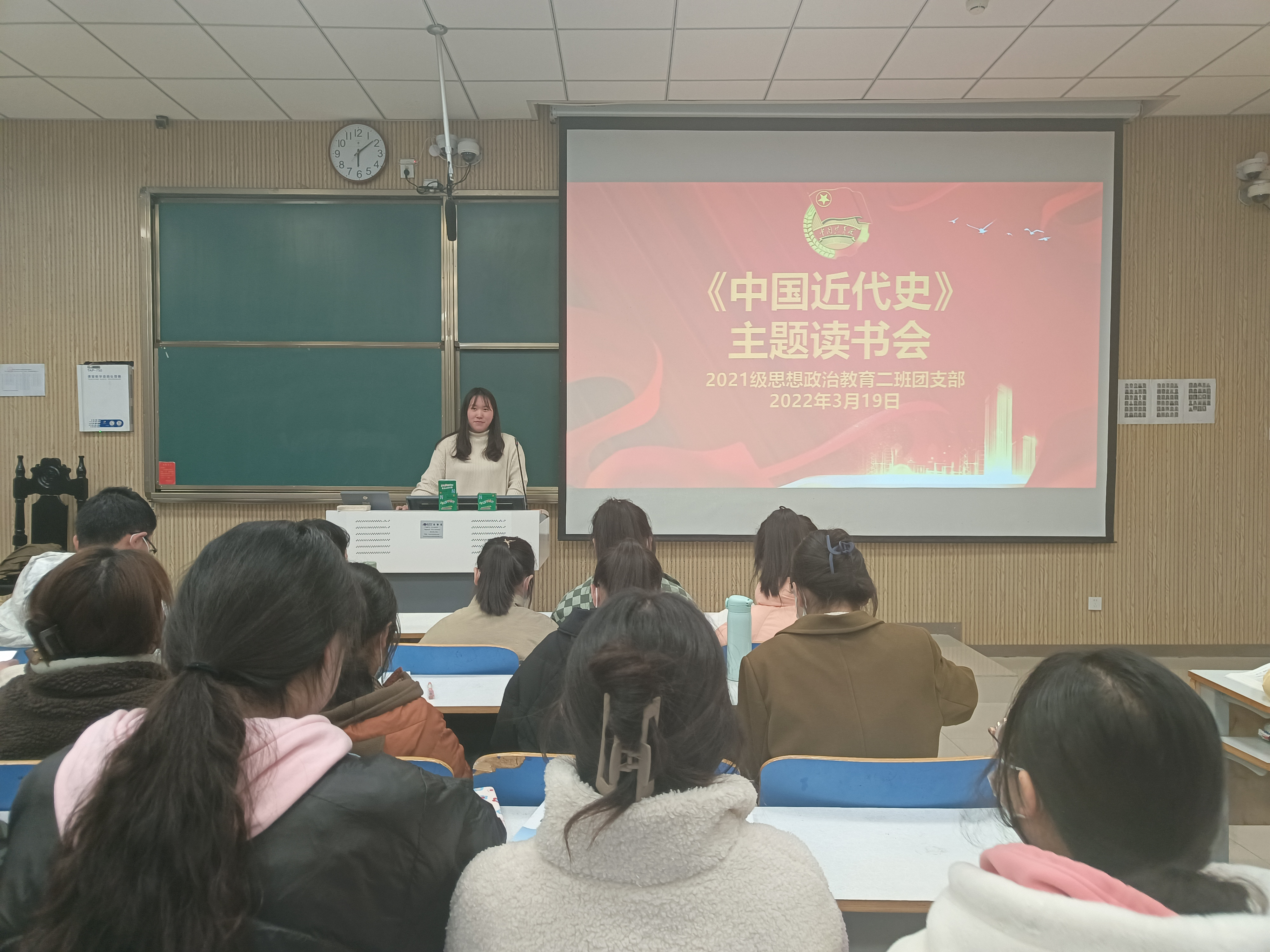 3月19日下午,pp电子官方网站2021级思想政治教育二班在社科楼515教室召开《中国近代史》主题读书会。2021级思想政治教育二班全体同学参加此次读书会,读书会由团支书王婧欣主持。