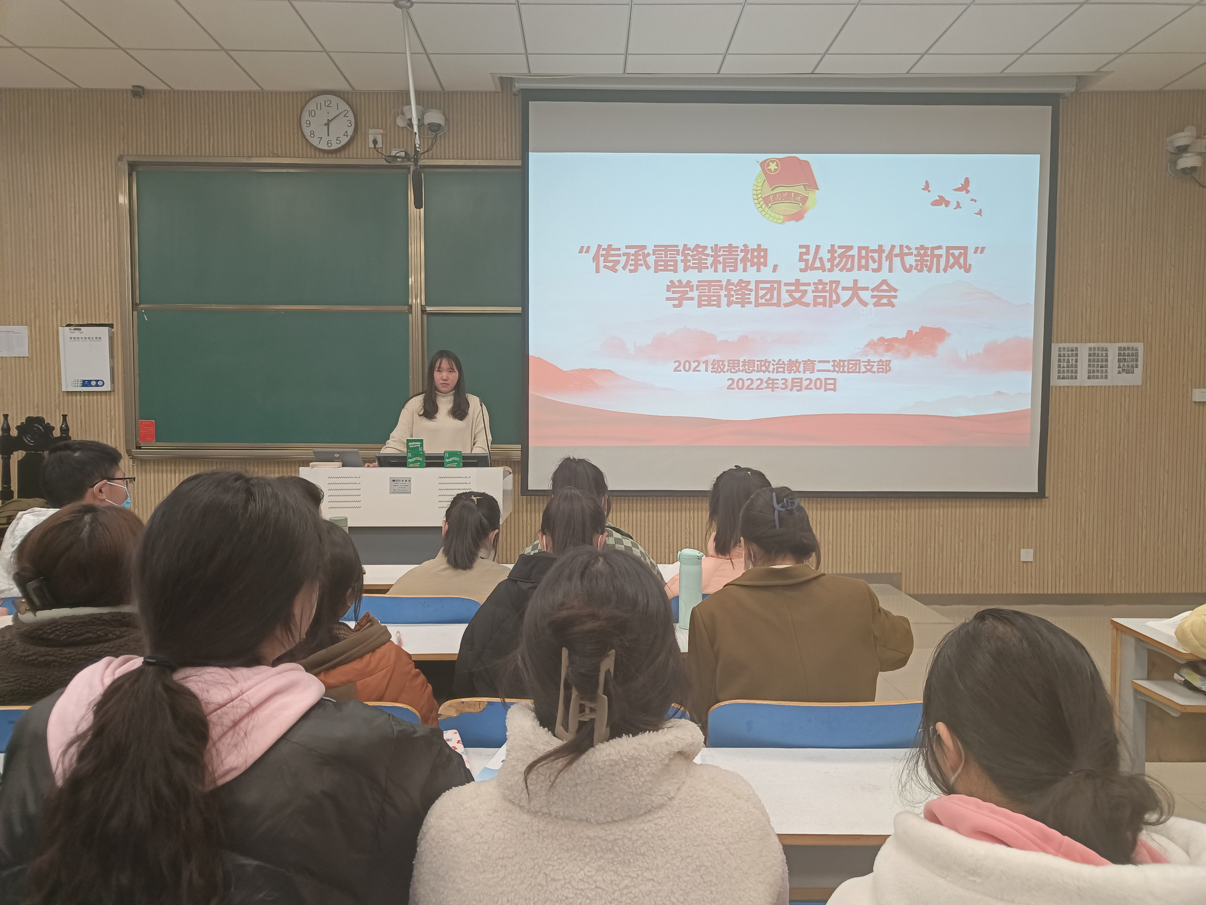 3月20日下午,pp电子官方网站2021级思想政治教育二班在社科楼515教室召开“传承雷锋精神,弘扬时代新风”学习雷锋团支部大会。2021级思想政治教育二班全体团员参加此次团支部大会,团支部大会由团支书王婧欣主持。