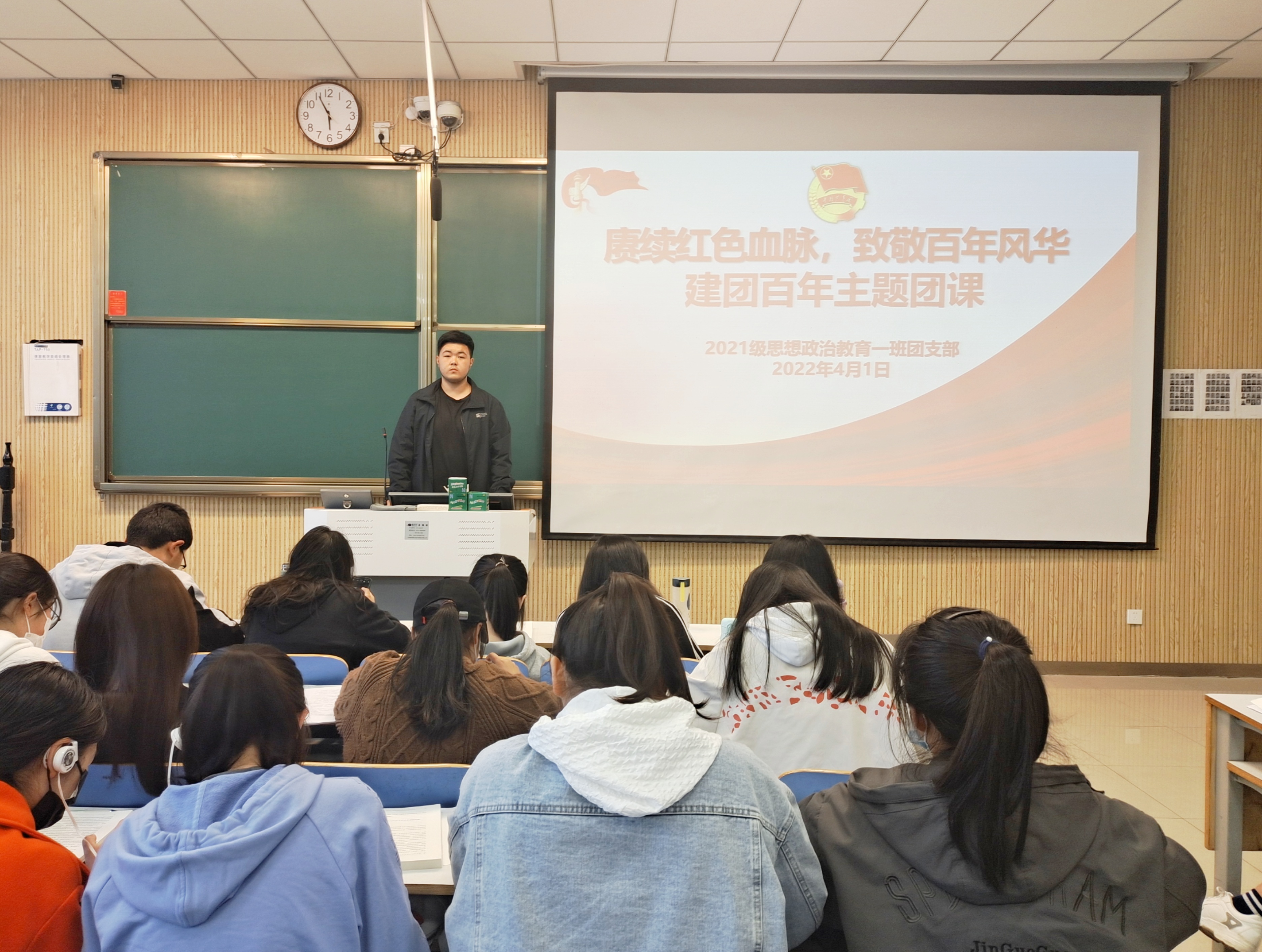 4月1日下午,pp电子官方网站2021级思想政治教育一班在社科楼515召开“赓续红色血脉,致敬百年风华”建团百年主题团课。2021级思想政治教育一班全体团员共同参加了本次团课。团课由团支书戴翰林主持。