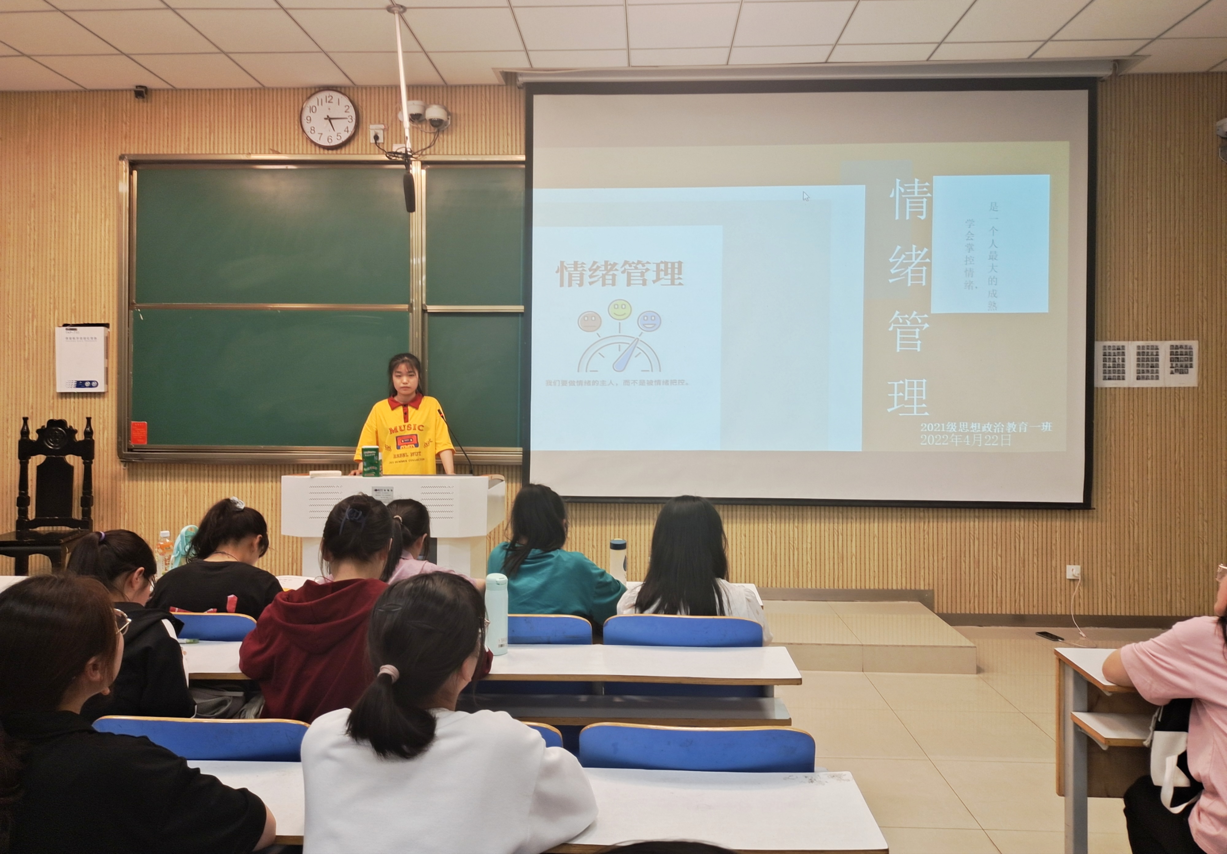 4月22日下午,pp电子官方网站2021级思想政治教育一班在社科楼515教室召开“情绪管理”主题班会。2021级思想政治教育一班全体成员参加了本次班会。班会由心理委员黄小妍主持。