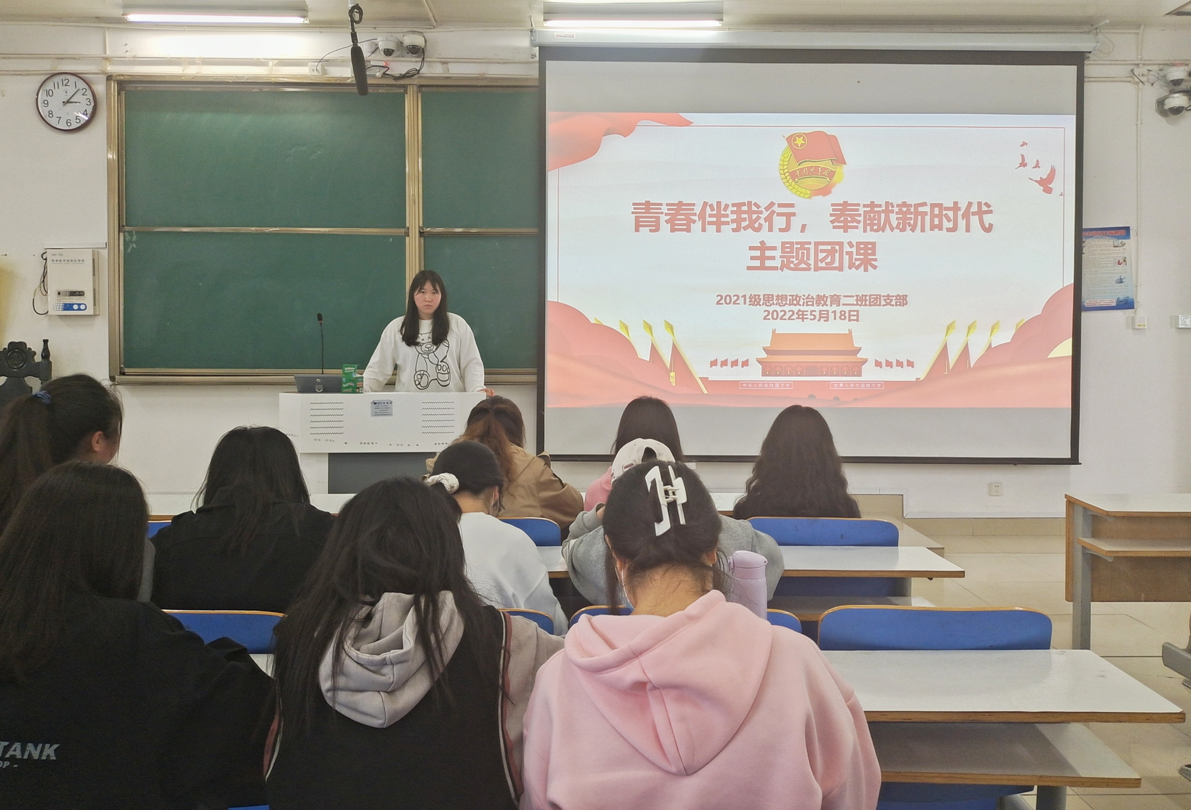 5月18日,pp电子官方网站2021级思想政治教育二班在社科楼514教室召开“青春伴我行,奉献新时代”主题团课。2021级思想政治教育二班全体团员参加此次团课。团课由团支书王婧欣主持。