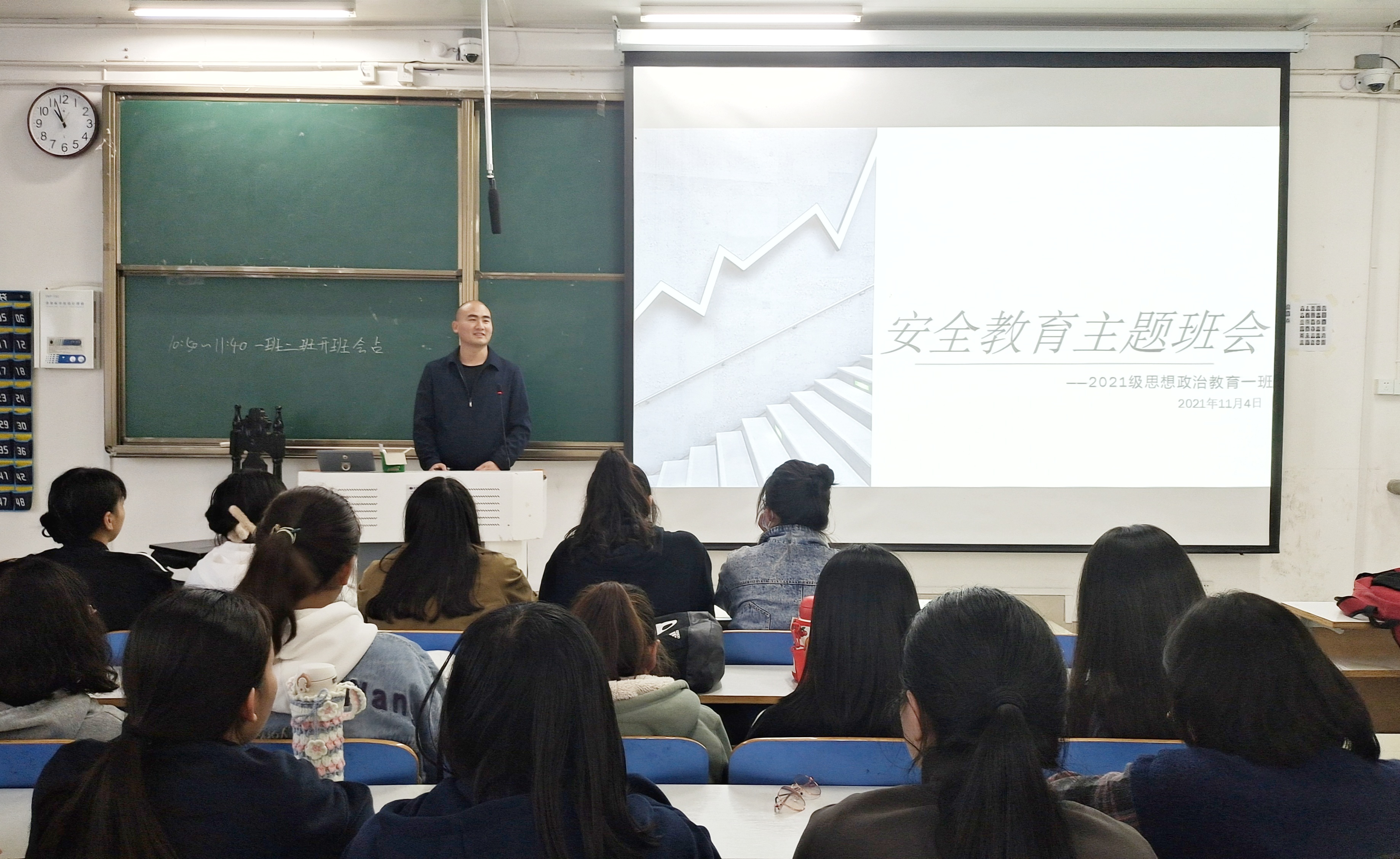 为进一步维护校园安全 ,加强学生安全意识。11月4日上午,pp电子官方网站2021级思想政治教育一班、二班在社科楼516顺利开展安全教育主题班会。辅导员周文豪以及2021级思想政治教育一班、二班全体同学共同参与此次班会,班会由周文豪主持。
