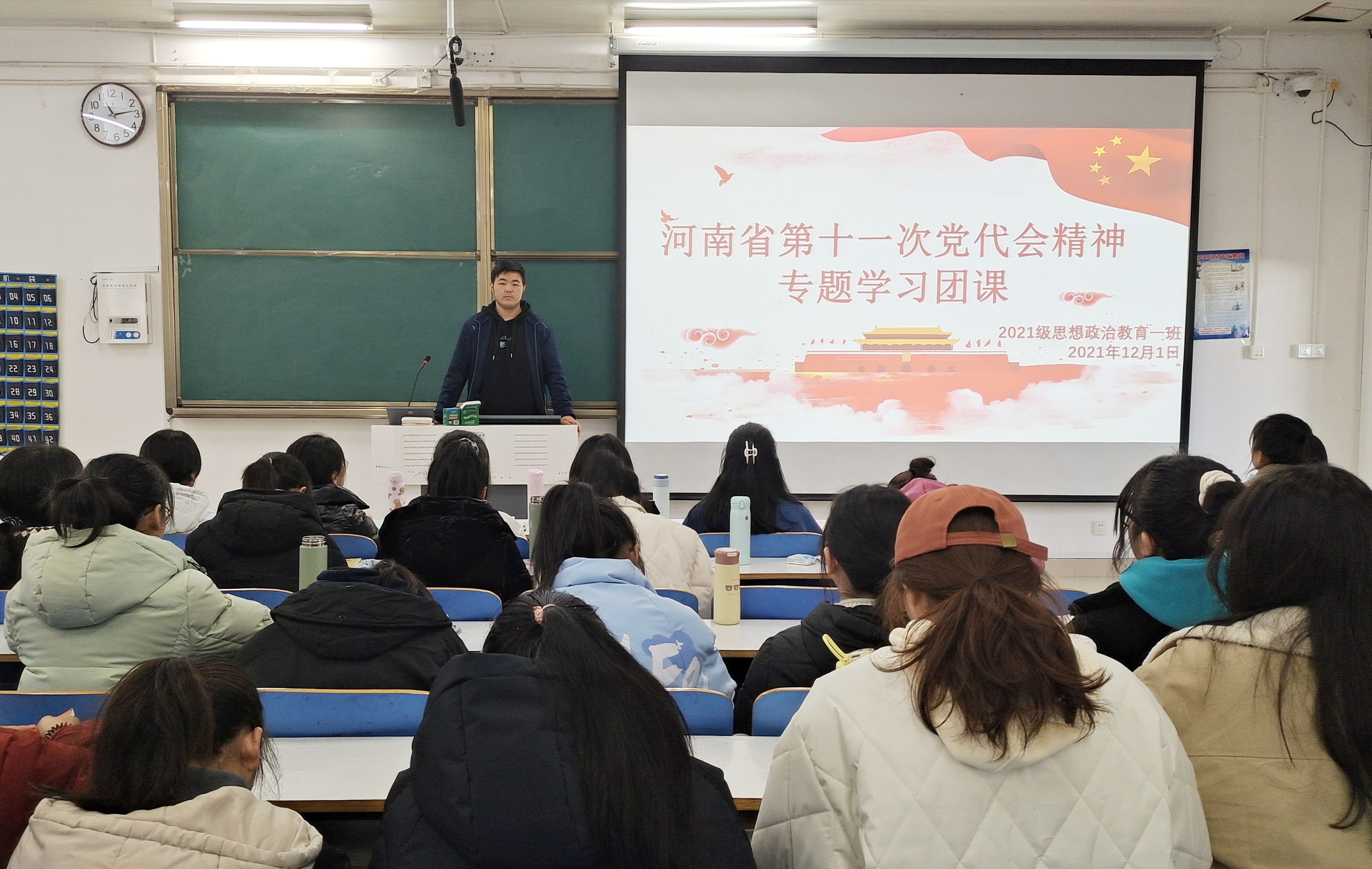 12月1日上午,pp电子官方网站2021级思想政治教育一班在社科楼514教室召开河南省第十一次党代会精神专题学习团课。2021级思想政治教育一班全体团员参加本次团课。团课由团支书戴翰林主持。