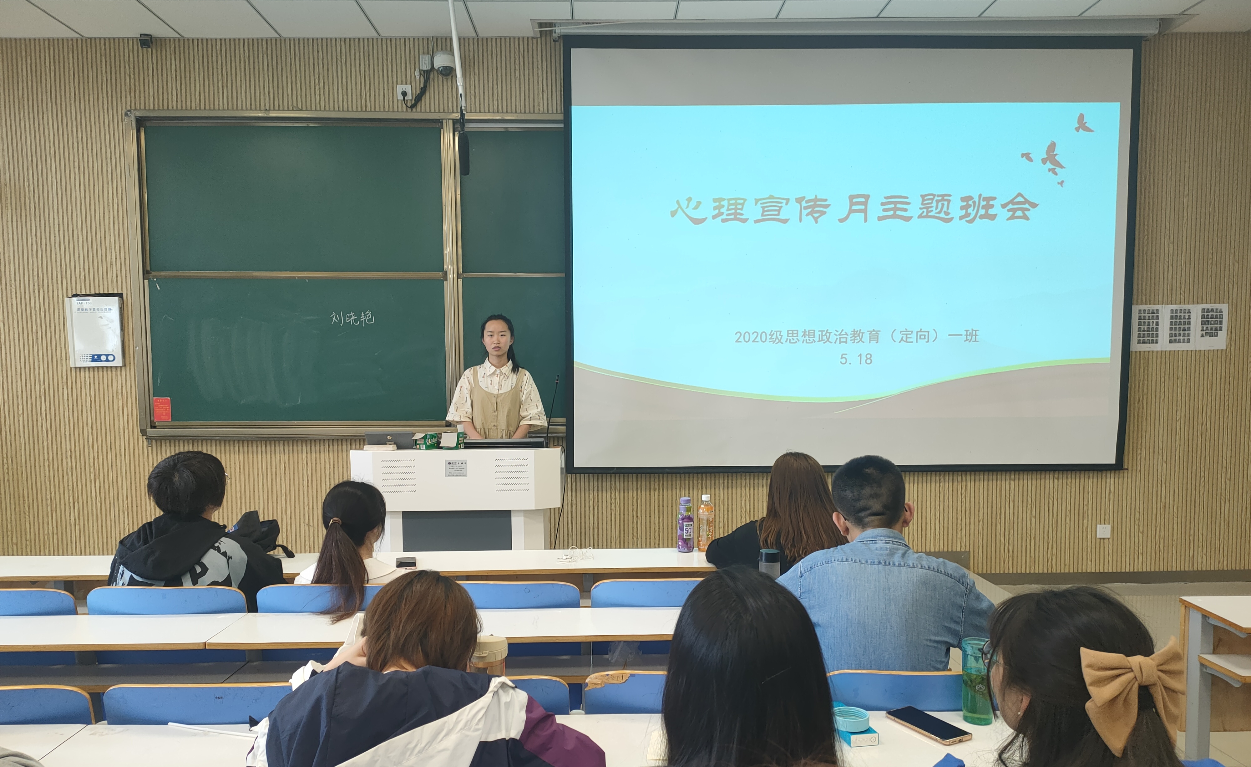 5月18日下午,pp电子官方网站思想政治教育(定向)一班心理宣传月主题班会在社科楼515顺利举办。pp电子官方网站思想政治教育(定向)一班全体学生聆听了此次班会。