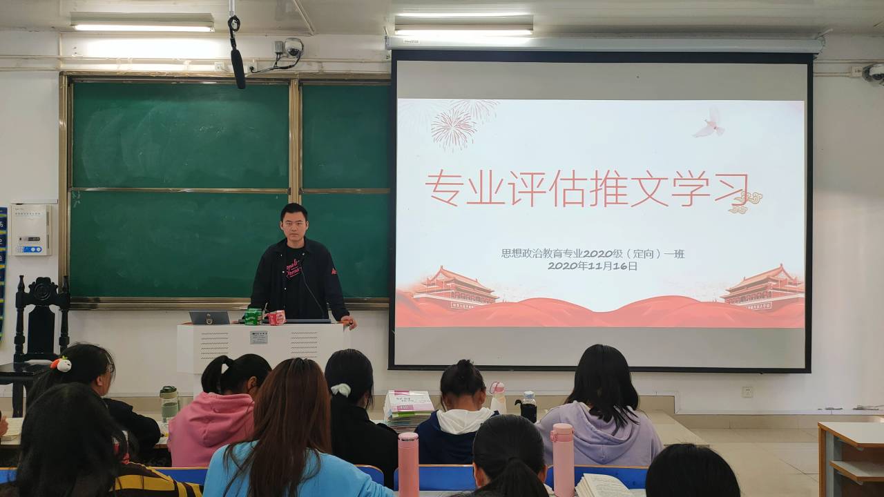 11月16日上午,pp电子官方网站定向一班在社科楼514教室顺利举办“专业评估推文学习”主题班会。定向一班全体学生聆听了此次班会,班会由团支书朱紫峰主持。