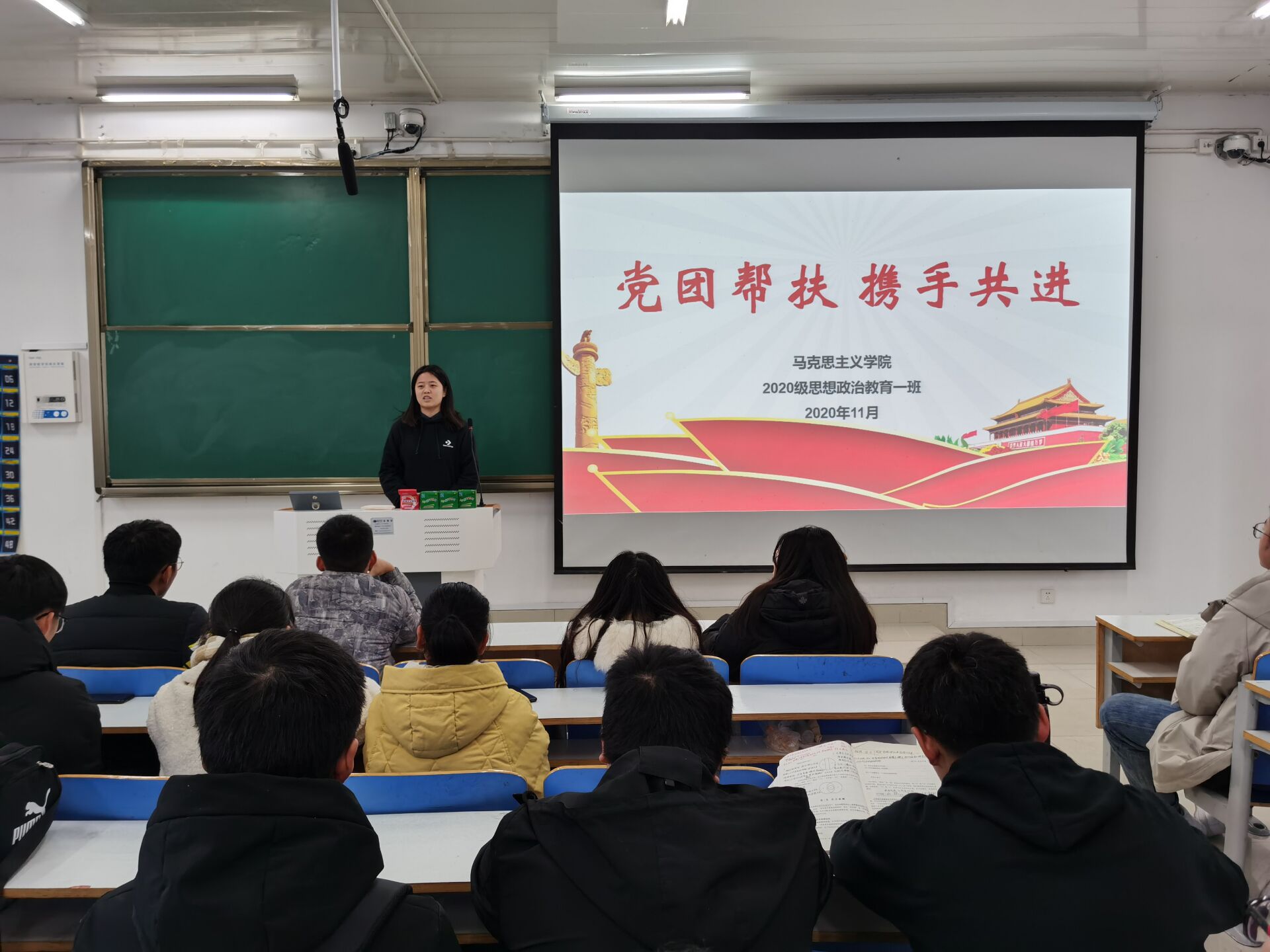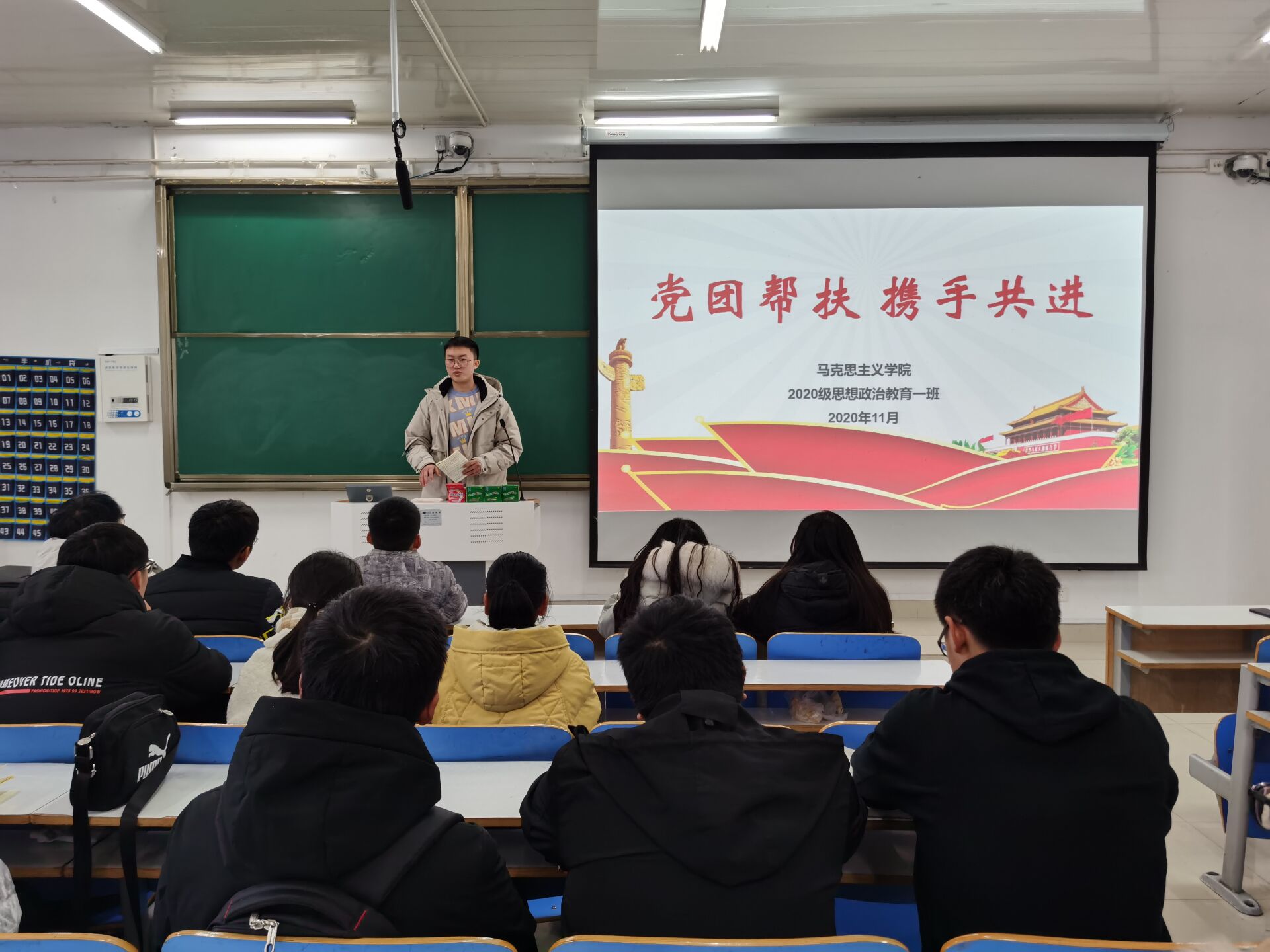 12月1日上午,pp电子官方网站2020级思想政治教育一班在社科楼514教室开展了党团帮扶会活动。2017级思想政治教育一班王雅纯、2018级思想政治教育一班邢子豪以及2020级思想政治教育一班全体同学参加了本次活动,会议由团支书卢茜雨主持。