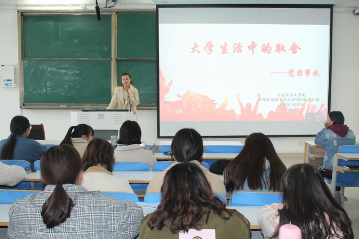 为充分发挥党员干部的先锋模范作用,帮助同学们解决学习和生活问题,3月22日下午,pp电子官方网站2018级思想政治教育一班在社科楼514教室顺利开展“党团帮扶”班会。2018级思政一班全体同学共同参加此次会议。会议由团支书靳雨露主持。