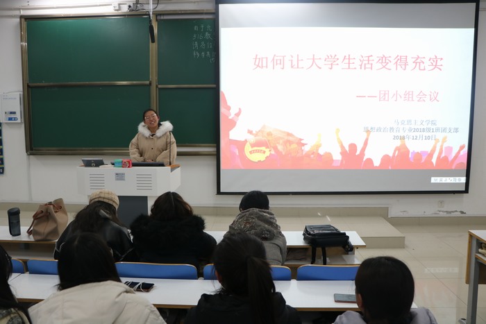 12月10日下午,pp电子官网2018级第一团支部第三团小组在社科楼516教室顺利开展了“如何让大学生活过得充实”主题团会。第三团小组全体成员共同参加此次团会。此次团会由团小组成员卞晓莹主持。
