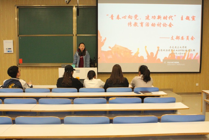 3月16日下午,pp电子官方网站2018级第一团支部在社科楼515教室顺利召开“青春心向党,建功新时代”支部委员会。2018级思想政治教育一班全体支部委员共同参加此次会议。会议由团支书靳雨露主持。