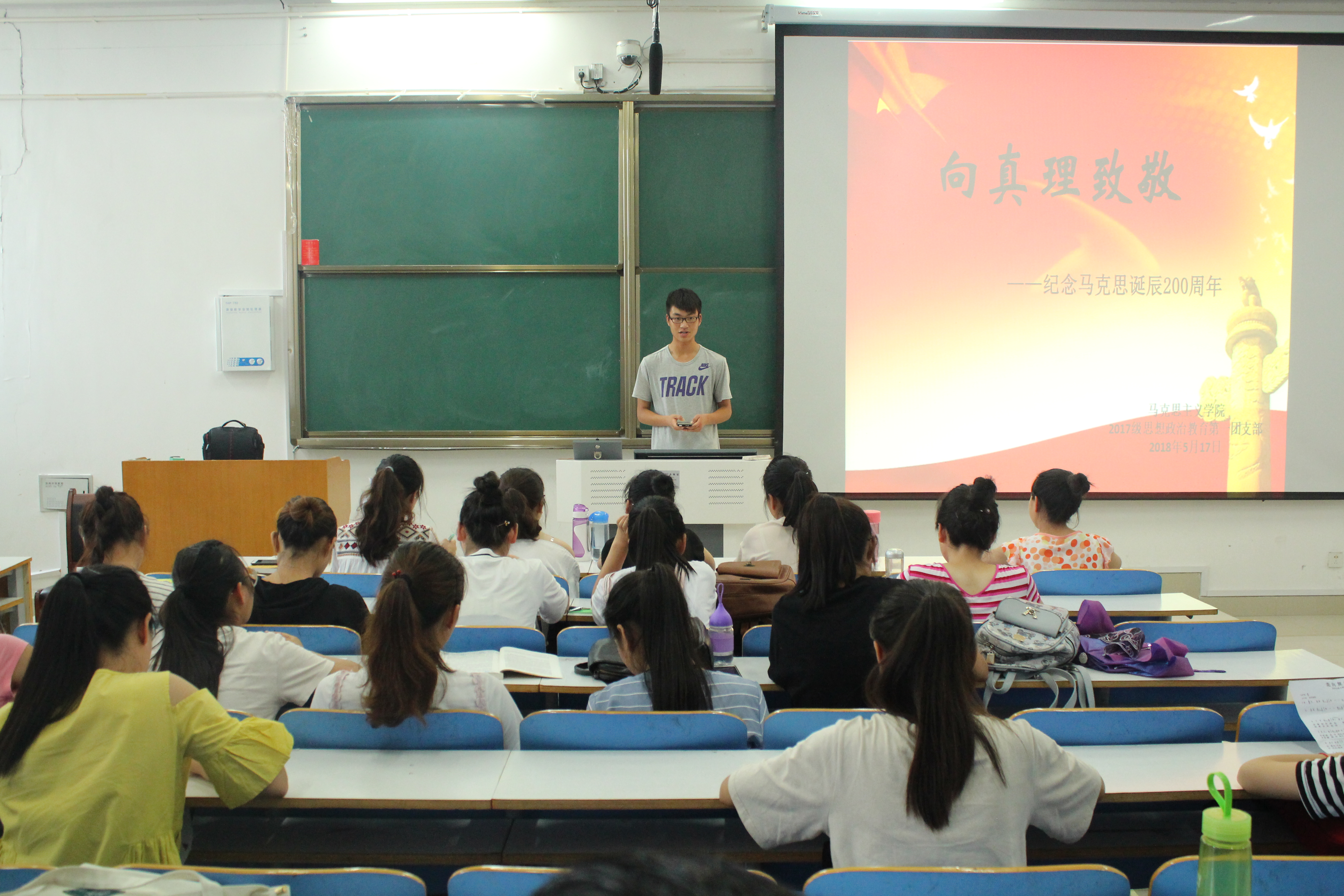 为纪念无产阶级伟大导师卡尔·马克思诞辰200周年,深入学习习近平总书记在马克思诞辰200周年时的重要讲话精神,5月17日上午,2017级思想政治教育一班团支部在社科楼515教室召开“向真理致敬——纪念马克思诞辰200周年”主题活动。活动由班长邹创主持。
