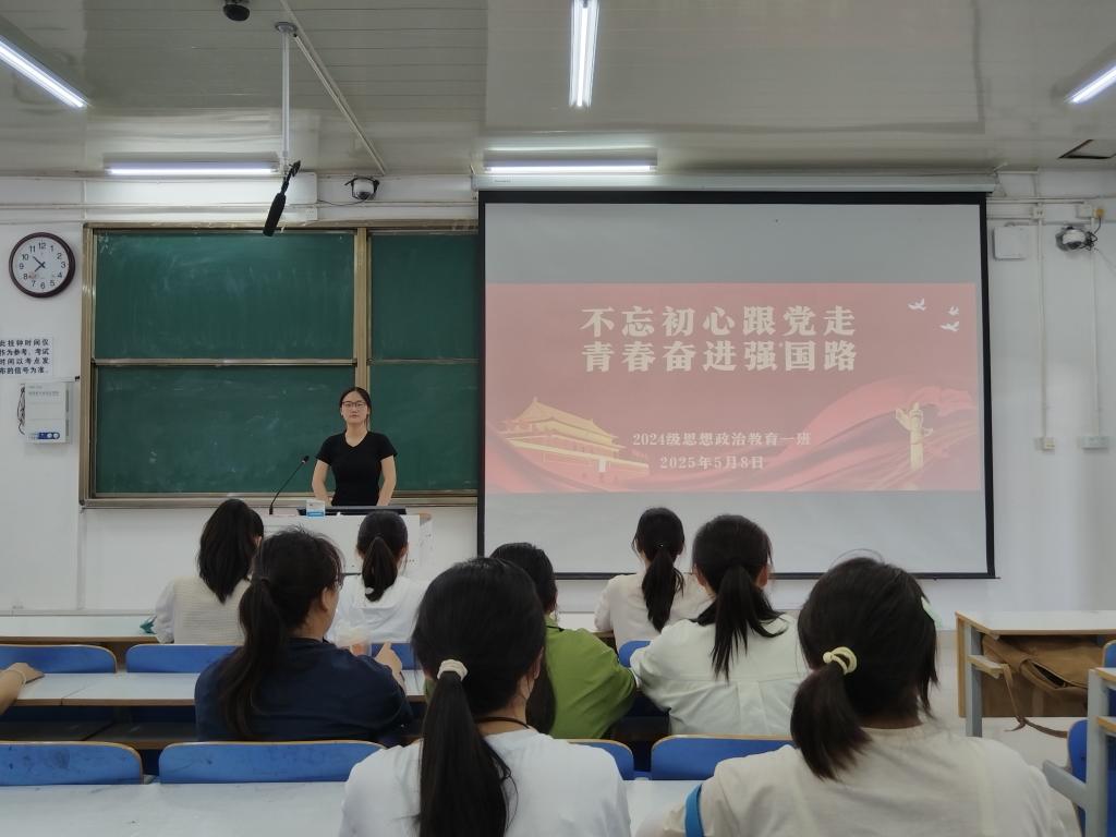 为深入学习贯彻党的二十大精神,引导青年学子坚定理想信念,勇担时代使命,5月8日上午,pp电子官方网站2024级思想政治教育一班于社科楼514教室召开“不忘初心跟党走,青春奋进强国路”主题团课。本次团课由团支书李冉主持,一班全体同学参加。