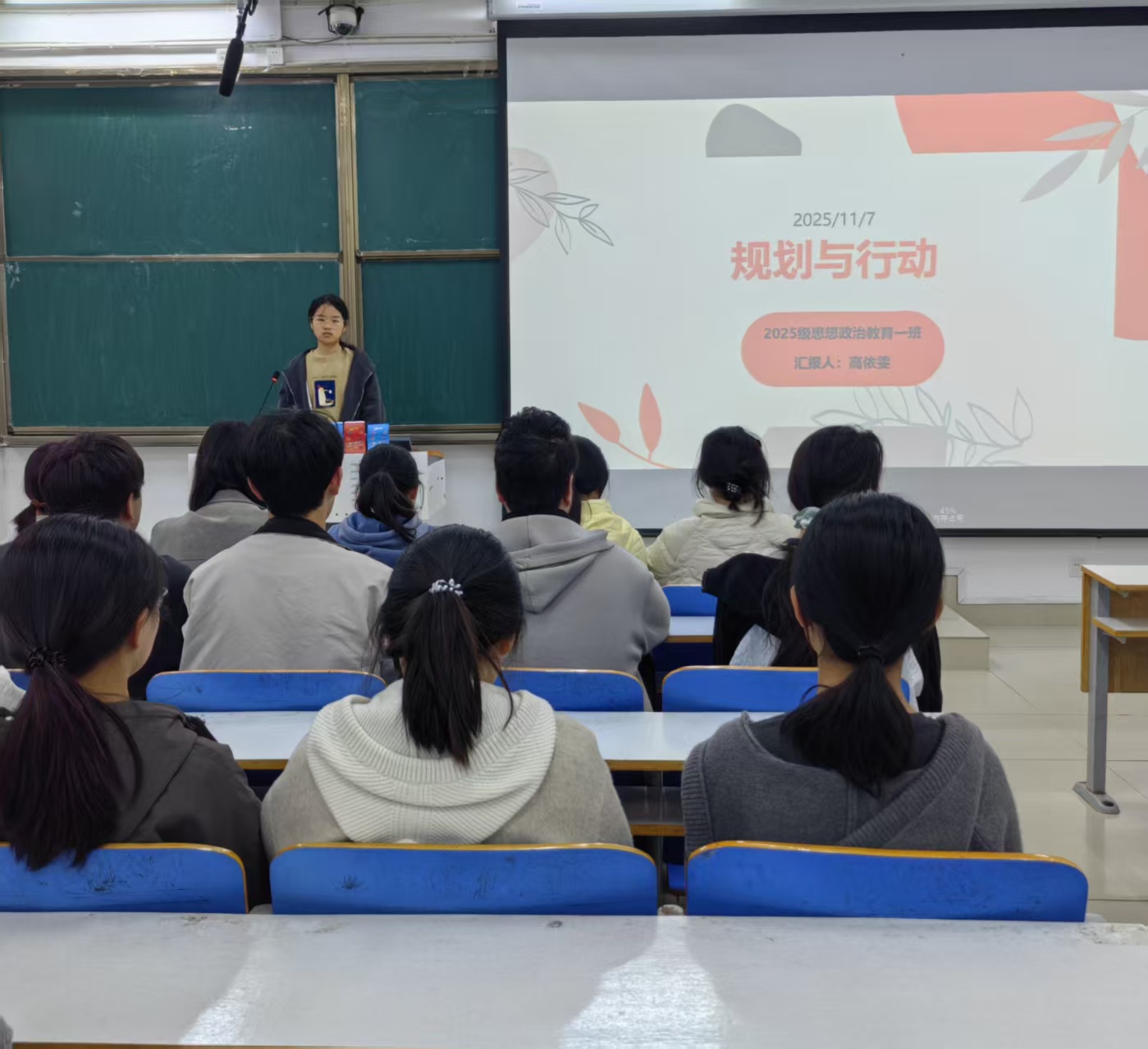 为引导同学们明晰学习方向、掌握科学规划方法,11月7日上午,pp电子官方网站2025级思想政治教育一班在社科楼514开展“规划筑根基,行动破迷茫”主题班会,本次活动由班长高依雯主持,班级全体同学参加。