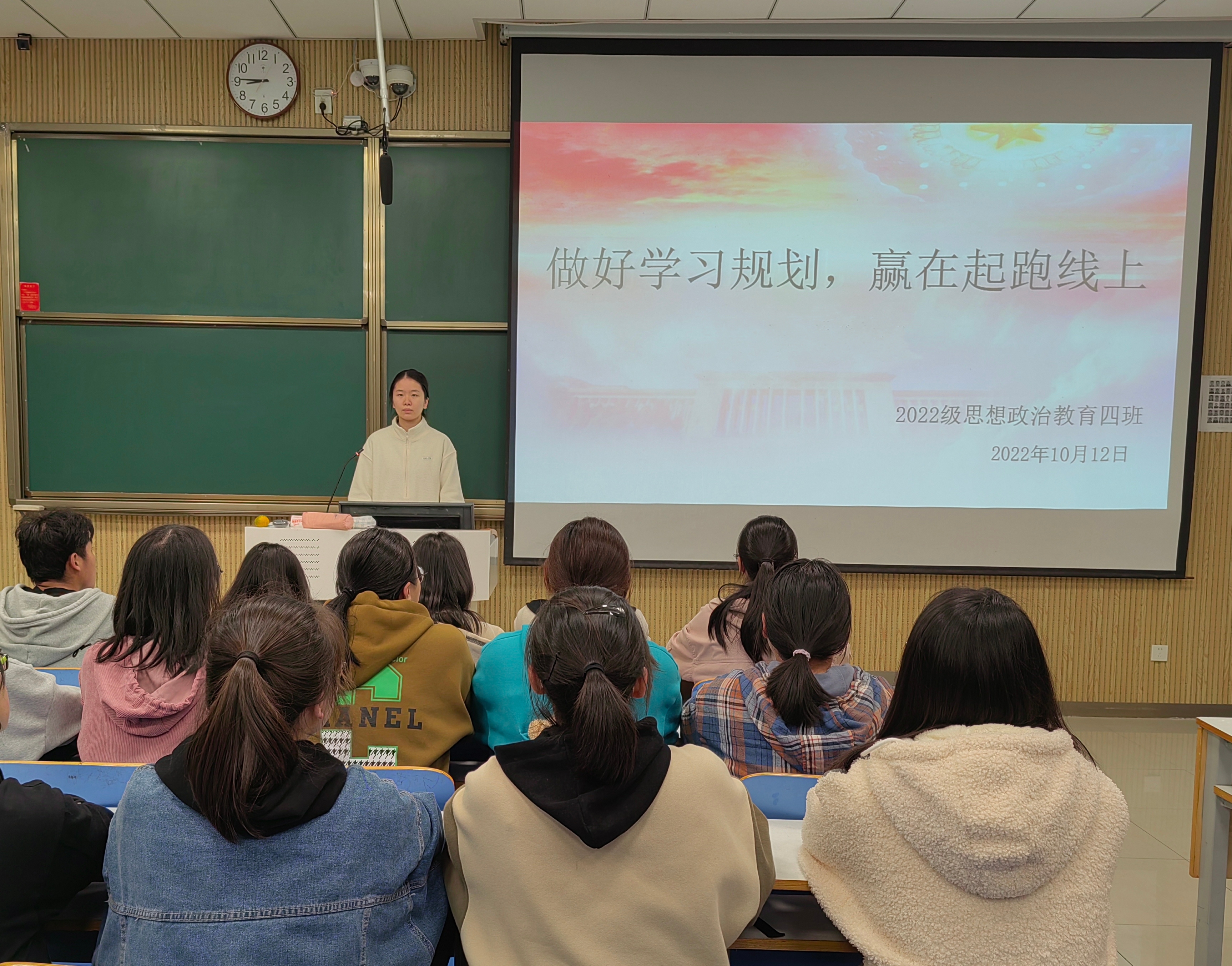 10月12日下午,pp电子官方网站2022级思想政治教育四班在社科楼515教室召开“做好学习规划,赢在起跑线上”主题班会。班会由班长牛志杰主持召开。