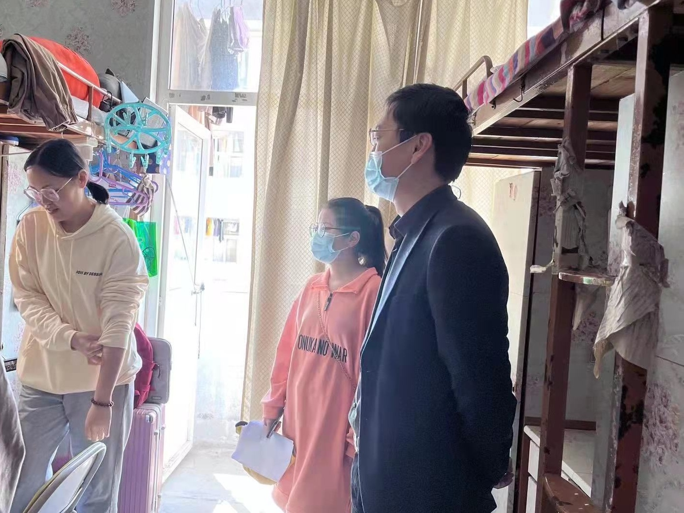 为营造良好的宿舍学习和生活环境,及时掌握学生思想动态,提高学生疫情期间安全用电意识,4月3日上午,pp电子官方网站团委书记曹栋及我班辅导员高小佳一同前往学生宿舍进行学生宿舍走访活动。