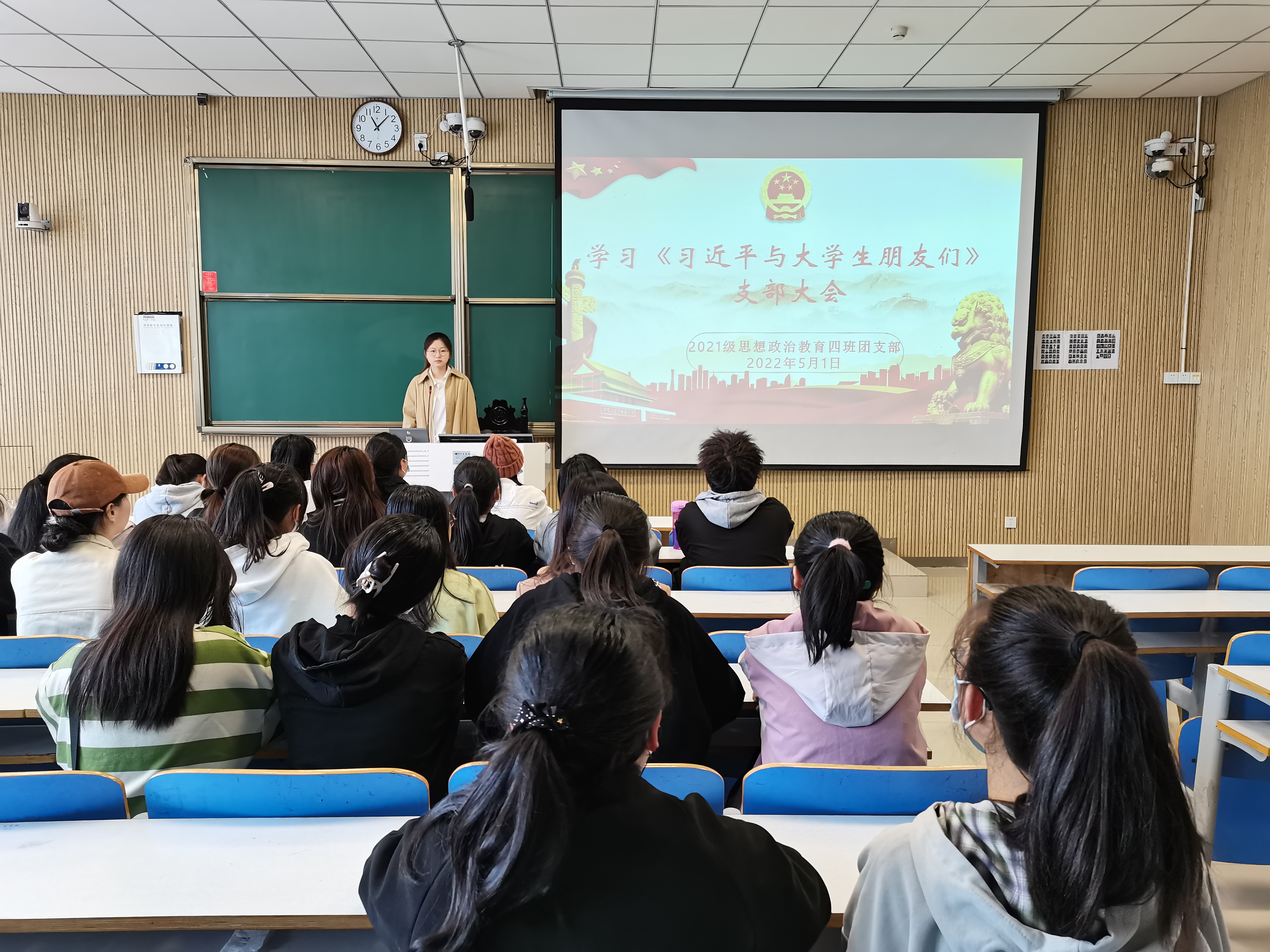 为追寻领袖足迹,聆听时代声音,5月1日上午,pp电子官方网站2021级思想政治教育四班在社科楼515教室开展学习《习近平与大学生朋友们》支部大会。2021级思想政治教育四班全体团员共同参加本次会议。会议由团支书刘珂含主持。