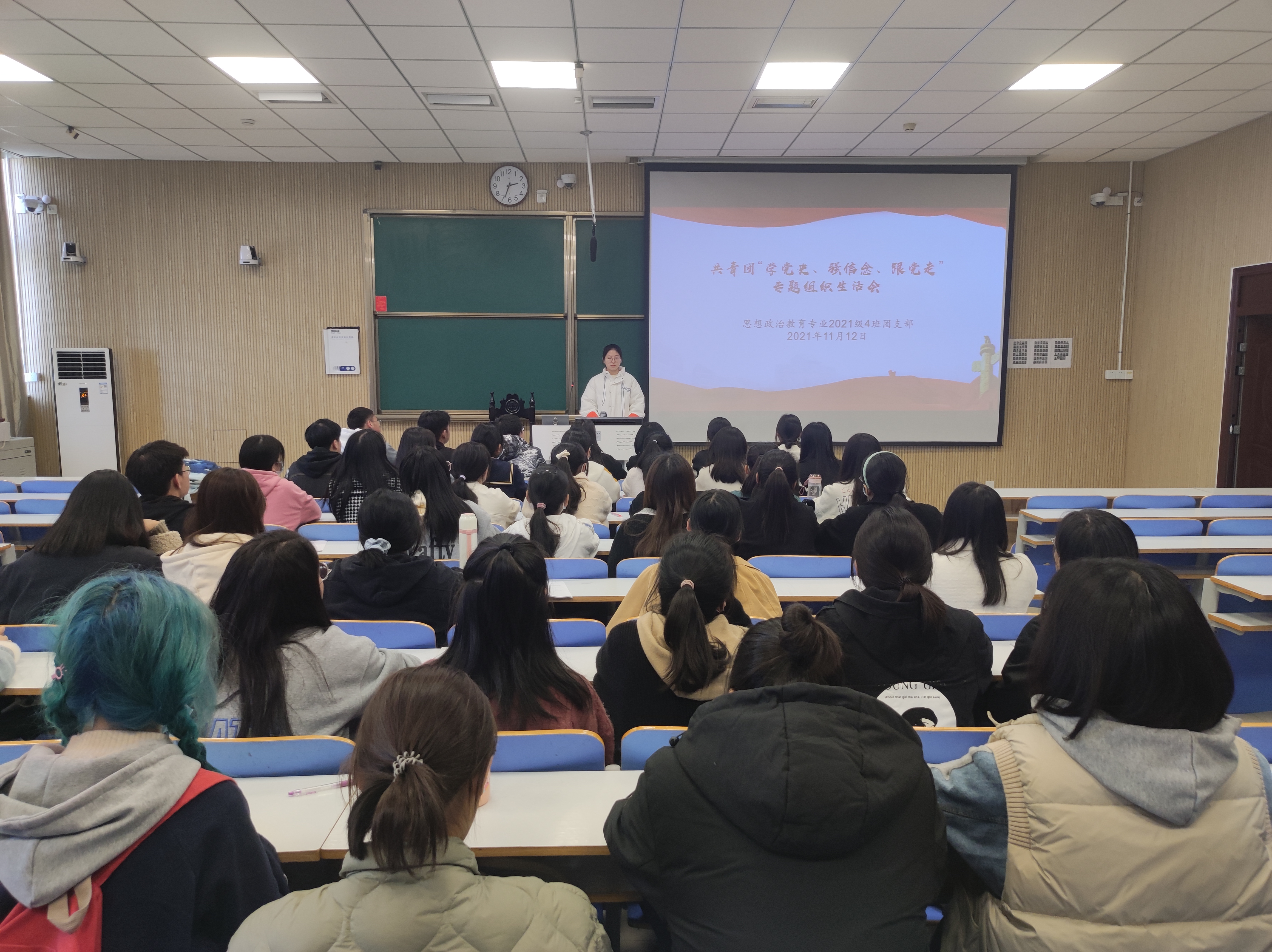 为响应共青团“学党史、强信念、跟党走”的号召,11月12日下午,pp电子官方网站2021级思想政治教育四班在社科楼515教室召开“学党史、强信念、跟党走”党史学习教育专题组织生活会。2021级思想政治教育四班全体同学参加了本次会议。会议由团支书刘珂含主持。