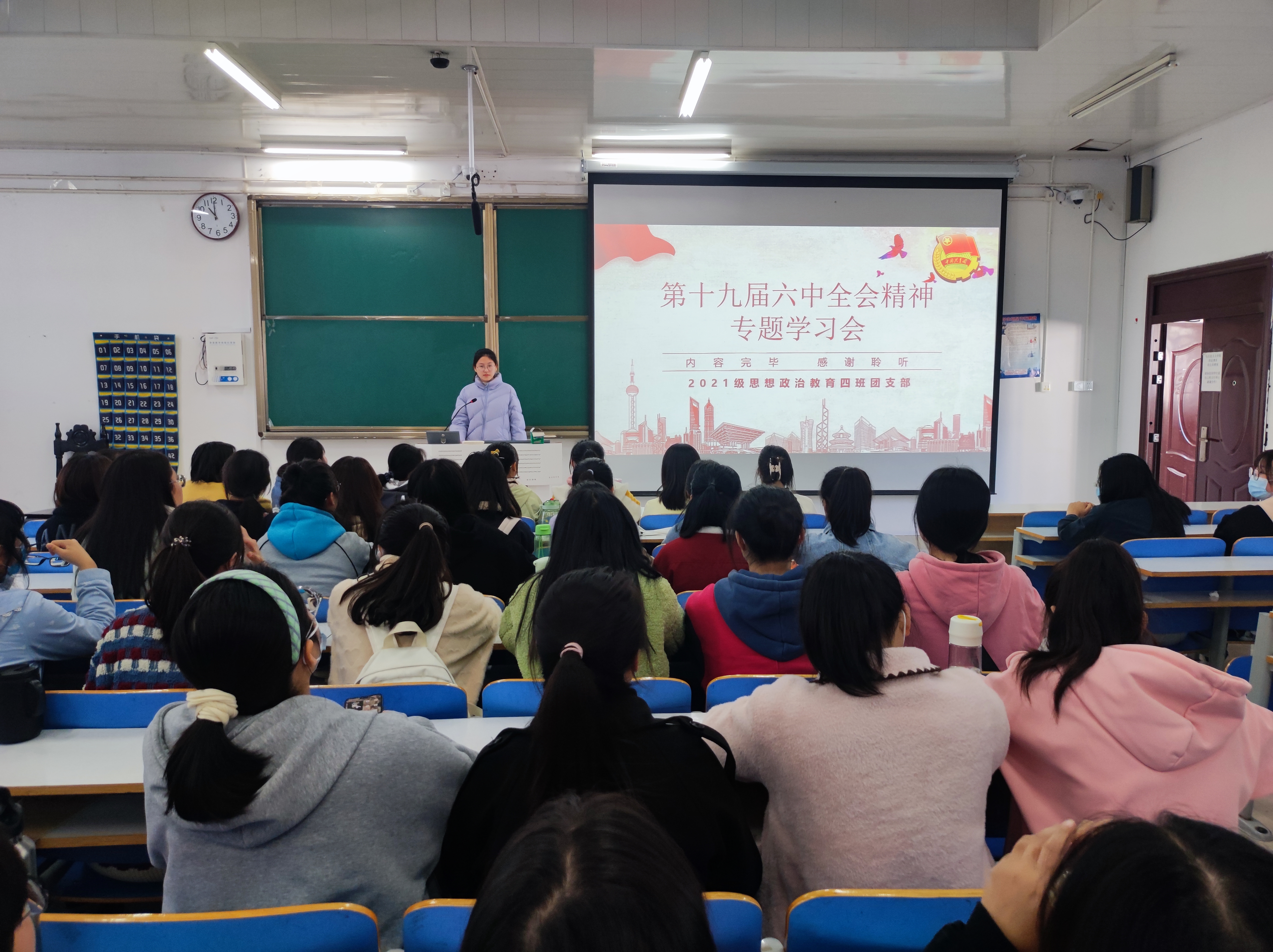 11月18日下午,pp电子官方网站2021级思想政治教育四班在社科楼514教室召开十九届六中全会精神专题学习会,2021级思想政治教育四班全体同学参加了本次专题学习会。专题学习会由团支书刘珂含主持。