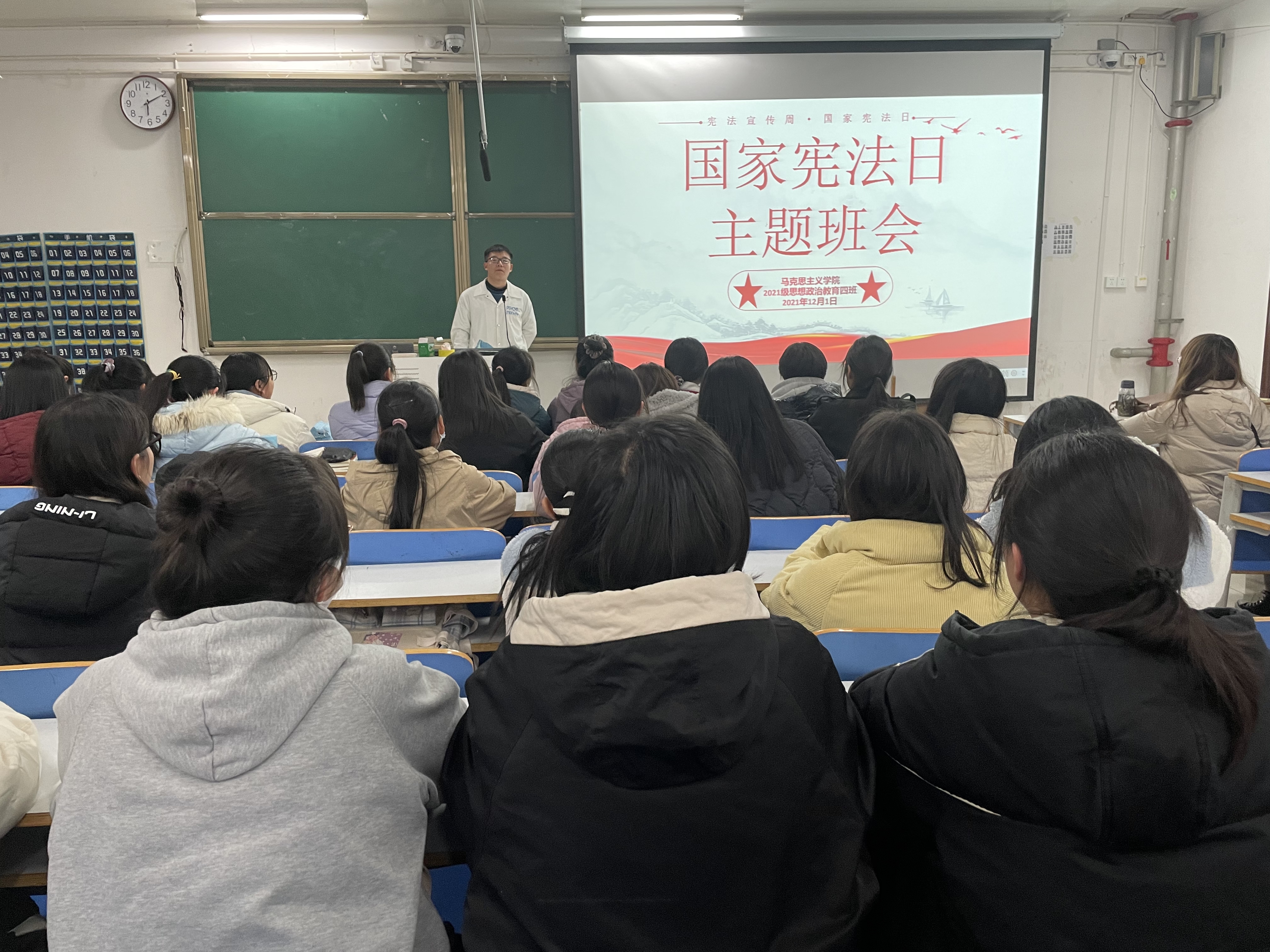 为深入学习习近平新时代中国特色社会主义思想,大力弘扬宪法精神,12月1日上午,pp电子官方网站2021级思想政治教育四班在社科楼514教室召开宪法宣传周主题班会。2021级思想政治教育四班全体同学参加此次班会,班会由副班长常康哲主持。