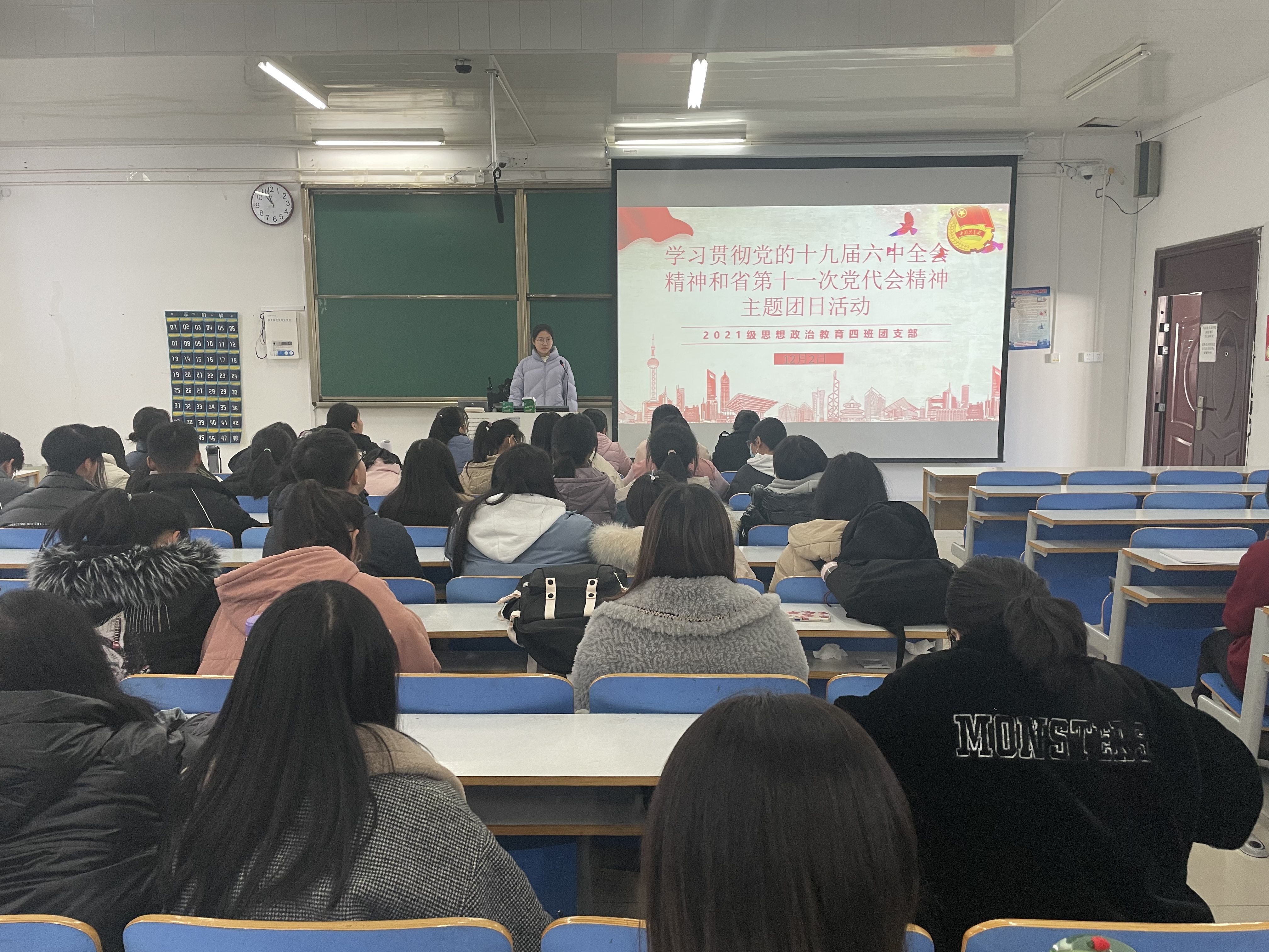 12月2日下午,pp电子官方网站2021级思想政治教育四班在社科楼514教室召开“学习贯彻党的十九届六中全会精神和第十一次党代会精神”主题团日活动。2021级思想政治教育四班全体团员参加本次团日活动。活动由团支书刘珂含主持。